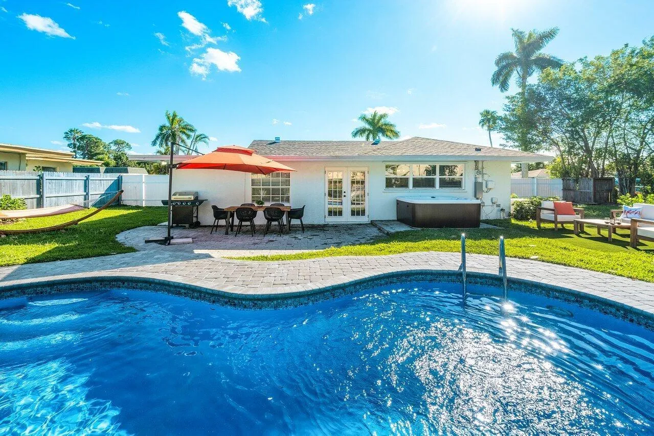 Beautifully renovated and fully furnished 3 bed , 2 bath home in the lively heart of West Palm Beach, just moments from the beach. This thoughtfully designed residence features an open layout filled with natural light, enhanced by new impact windows and doors. Enjoy the contemporary feel of a brand-new kitchen with quartz countertops and top-quality stainless steel appliances. Every aspect of this home radiates luxury and convenience, from the updated bathrooms and elegant large porcelain tile flooring to the state-of-the-art washer/dryer and water heater. The spacious 8,276 sqft lot is a tropical haven adorned with mature coconut palms and exotic plants, creating a serene and lush atmosphere. Experience the freedom of no HOA restrictions.