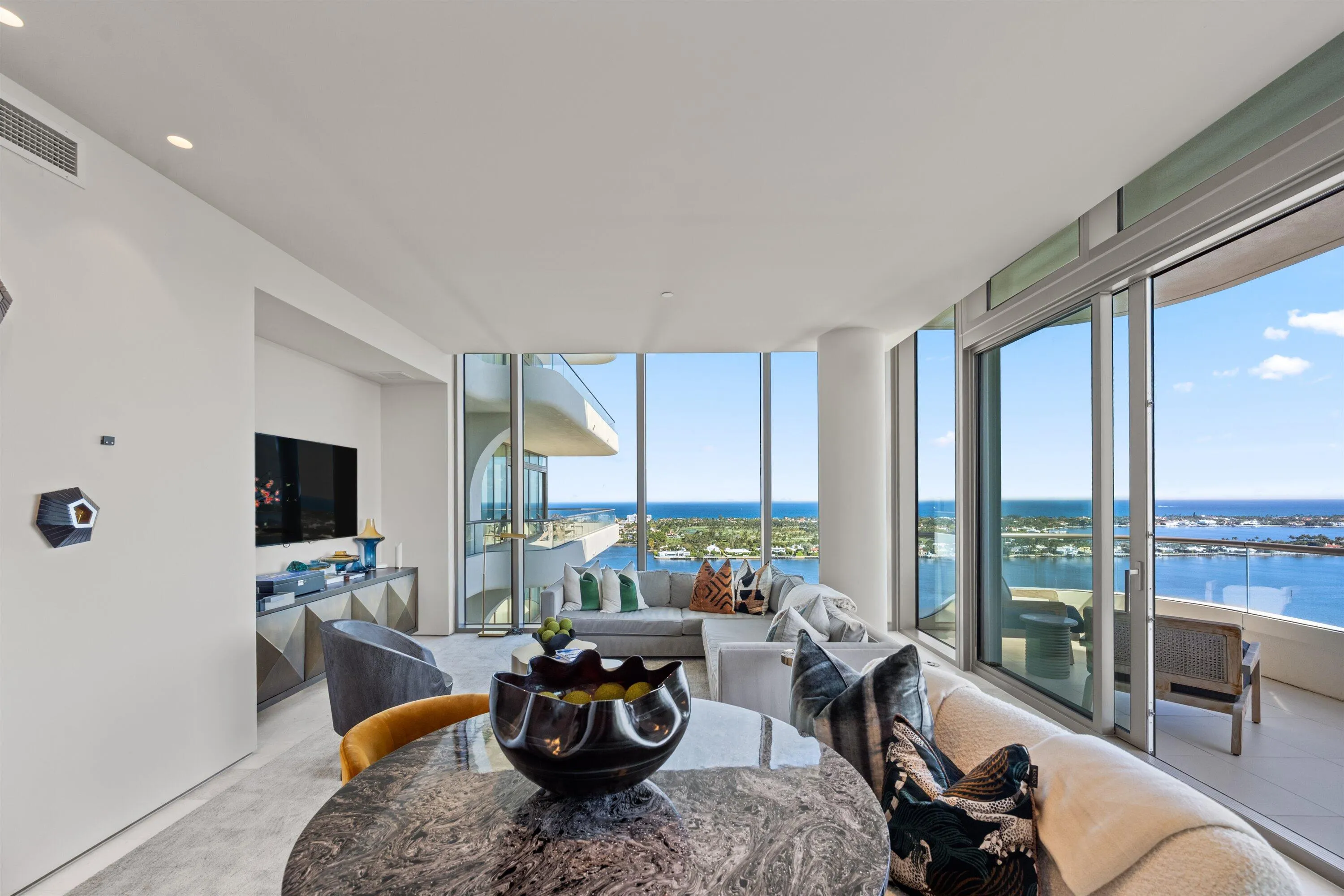 WATERFRONT ZEN.New Development-Private Penthouse style Oasis w/17′ High Ceilings; Rare Find! This Uber Chic Loft has unobstructed 47′ wide open Water and Park Views. Walk to everything lifestyle! All New Boasting 3 Balconies, the Finest materials, High-end Appliances, chef’s custom kitchen w/Huge Island, genuine Oak floors, custom cabinets and closets,Impact Windows. Turn Key vacation or Year round home or Investment-can be leased 2 times a year. 3 Parking spaces on same level, Pets Welcome,24-hour Security,No structural assessments, Lowest HOA’s for comparable buildings in WPB.