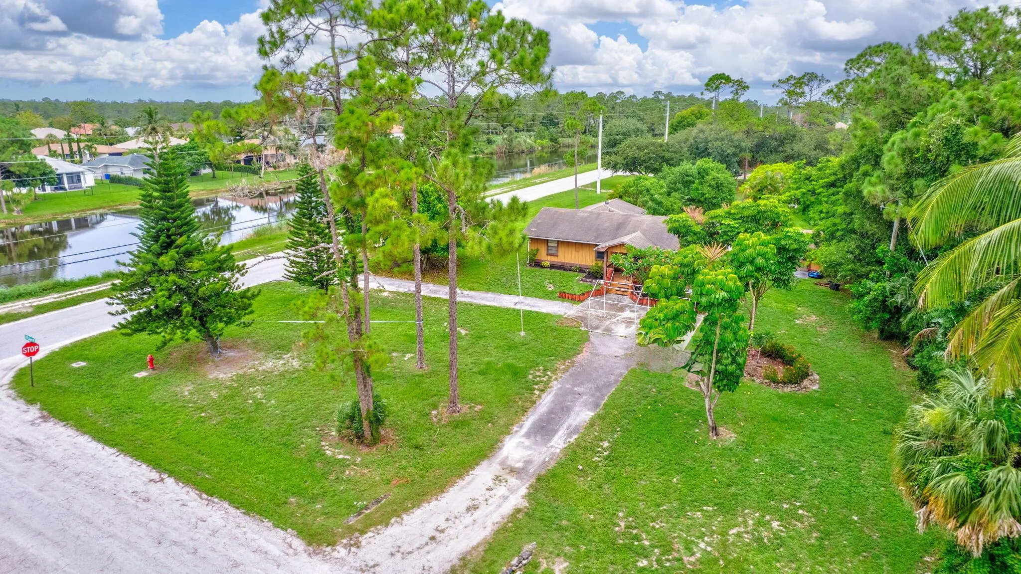 Land, land, & more land. This is a 1 1/4 acre corner lot with a single family home and a large attached in-law suite connected to it. Brand new AC system. There’s a total of 4 bedrooms and 2 baths. The home can be configured as a 3/1 with large 2-room efficiency/ in-law suite with separate entrance OR the home can be easily reconfigured into a traditional large 4/2. Kitchen has plenty of storage & an eat in counter top. Options are endless to make this your own.. Open space and canal to the south adds to the privacy on this wooded lot. Plenty of room for all three: a pool, boat, & RV. No HOA, no restrictions, and no hassles.