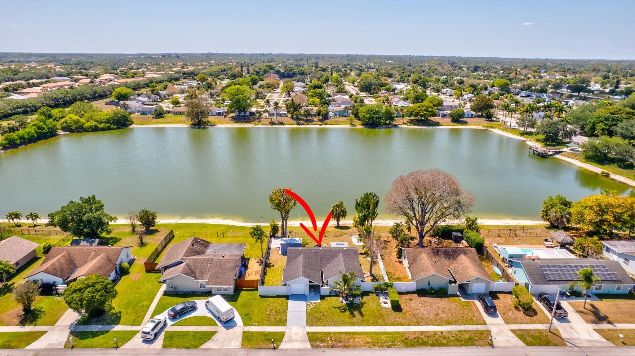 Nestled on the serene shores of a crystal, clear lake, this charming and cozy 3 bed/2 bath 1 car garage, single family home offers the perfect blend of modern comfort and feel good vibes from the moment that you step through the front door. Thoughtfully remodeled with stylish finishes and attention to detail, the home features an open concept living space with large windows that allow for an abundance of natural light to shine through. When you step into the updated kitchen you will feel a warm hug with a modern twist. The updated master bath blends spa like tranquility with a classic design. This home is worth your time. Roof 2017, AC 2023, Water Heater 2013, Sq D Electrical Panel, Gutters, fully furnished including TV’s, Impact windows and doors throughout. No HOA