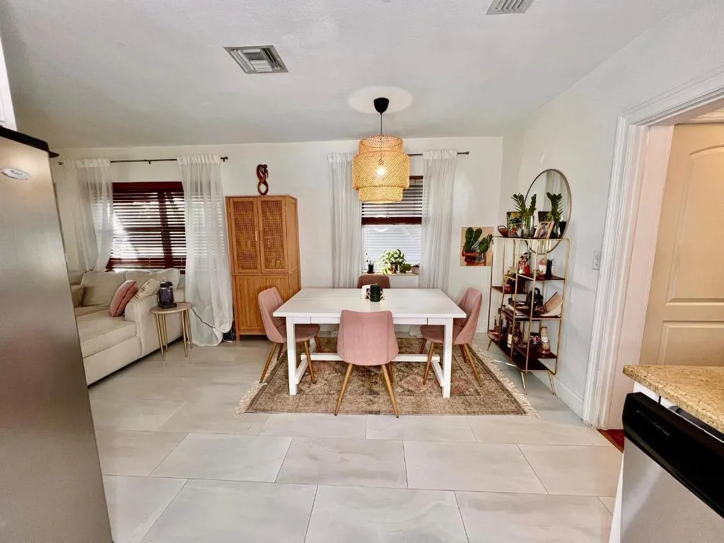 Two/Bedroom One and Half Bathroom Single Family House. All new tile flooring, this rental has only window a/c’s, Each room has a ceiling fan. Large fridge. Open Kitchen, Updated Bathroom, A separate room for Storage and Washer/ Dryer included. Freshly painted. Fenced in property from driveway. Owner prefers 1 pet only. Move in ready. This home has NO HOA restrictions. Lawn care included in rent. Ideal landlord.