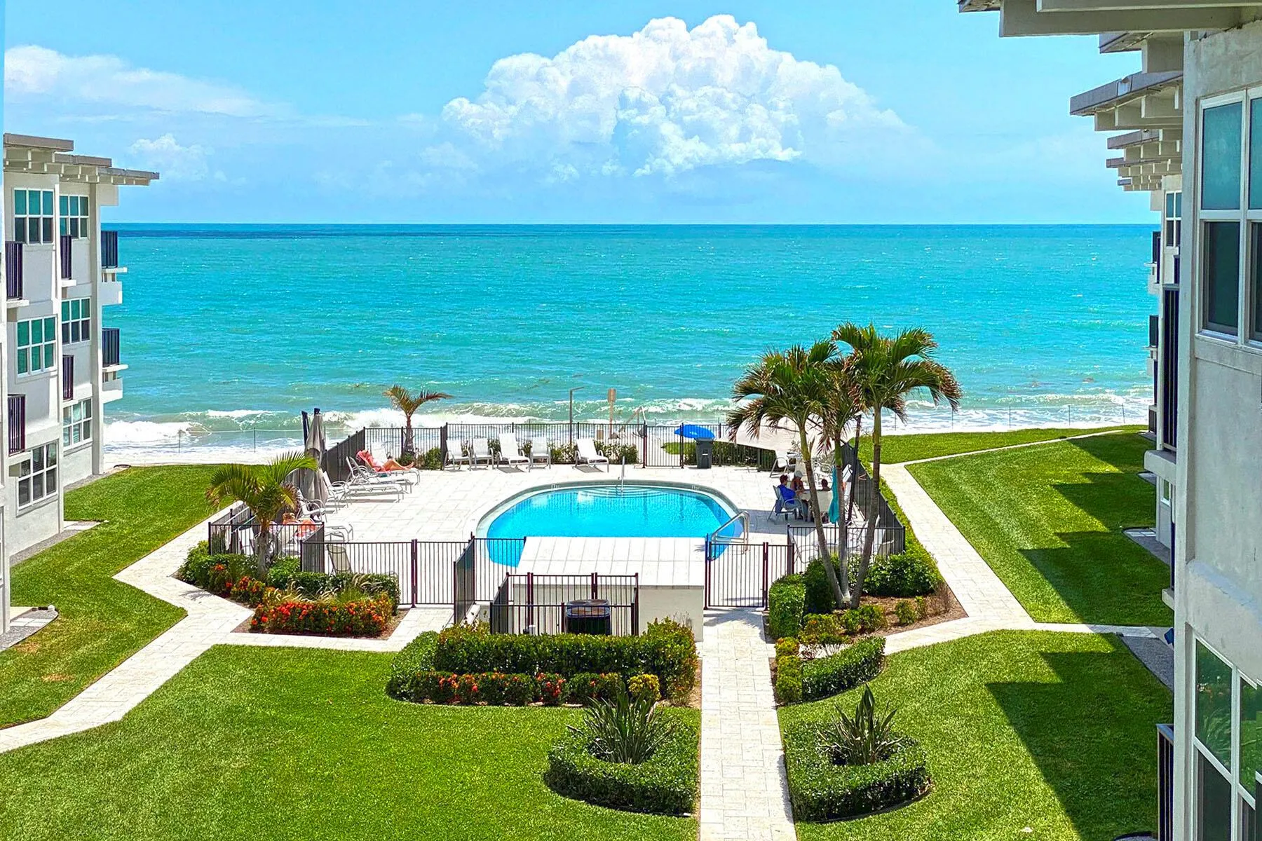 Beautiful updated, fully furnished condo looking out at the ocean. Walk to shops and dining. Steps to the beach and boardwalk. Own a slice of paradise for quick getaways, or a fabulous retreat during the cold winter months. Top floor, impact windows & sliding glass doors. Tile throughout; stainless steel appliances; quartz counter tops. Owner’s allowed one pet, up to 30 lbs. 1 assigned parking spot. Storage unit. Great rental opportunity.