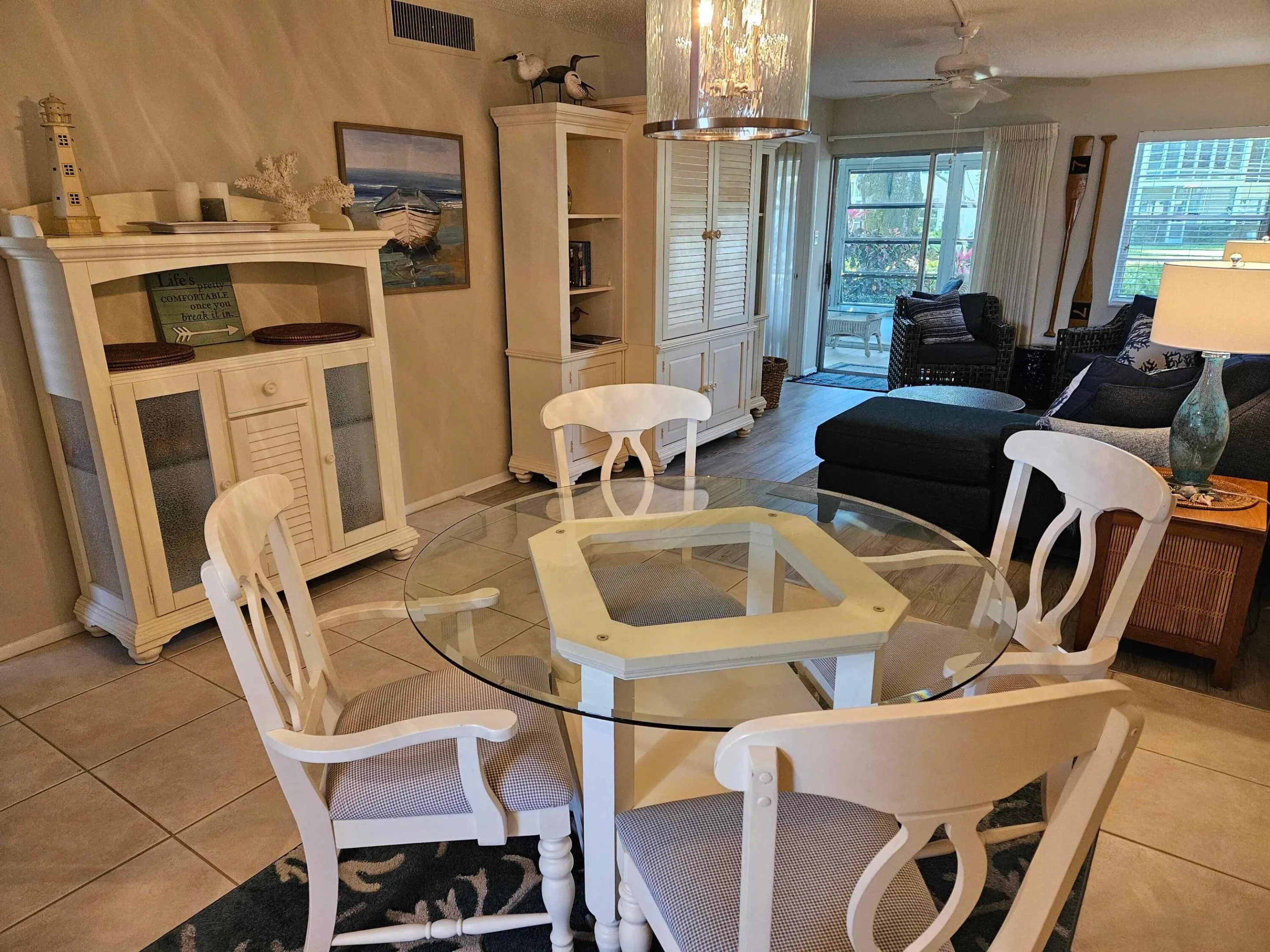 Available for seasonal or annual rental, tastefully furnished and updated two story unit across the street from shopping and restaurants on Miracle Mile and a short hop to the beach side. Main level: kitchen, half bath, dining and living areas + enclosed porch can serve as den. Two en-suite bedrooms upstairs with plenty of closets. Community pool, tennis courts and club house complete the retreat. Ample amount of parking. King bed in main bedroom, two twins in 2nd bedroom. Turn key. Washer and dryer. No Pets. On annual lease Tenant pays electric and internet, first, last, security to move in. Utilities included on seasonal at $3000/month