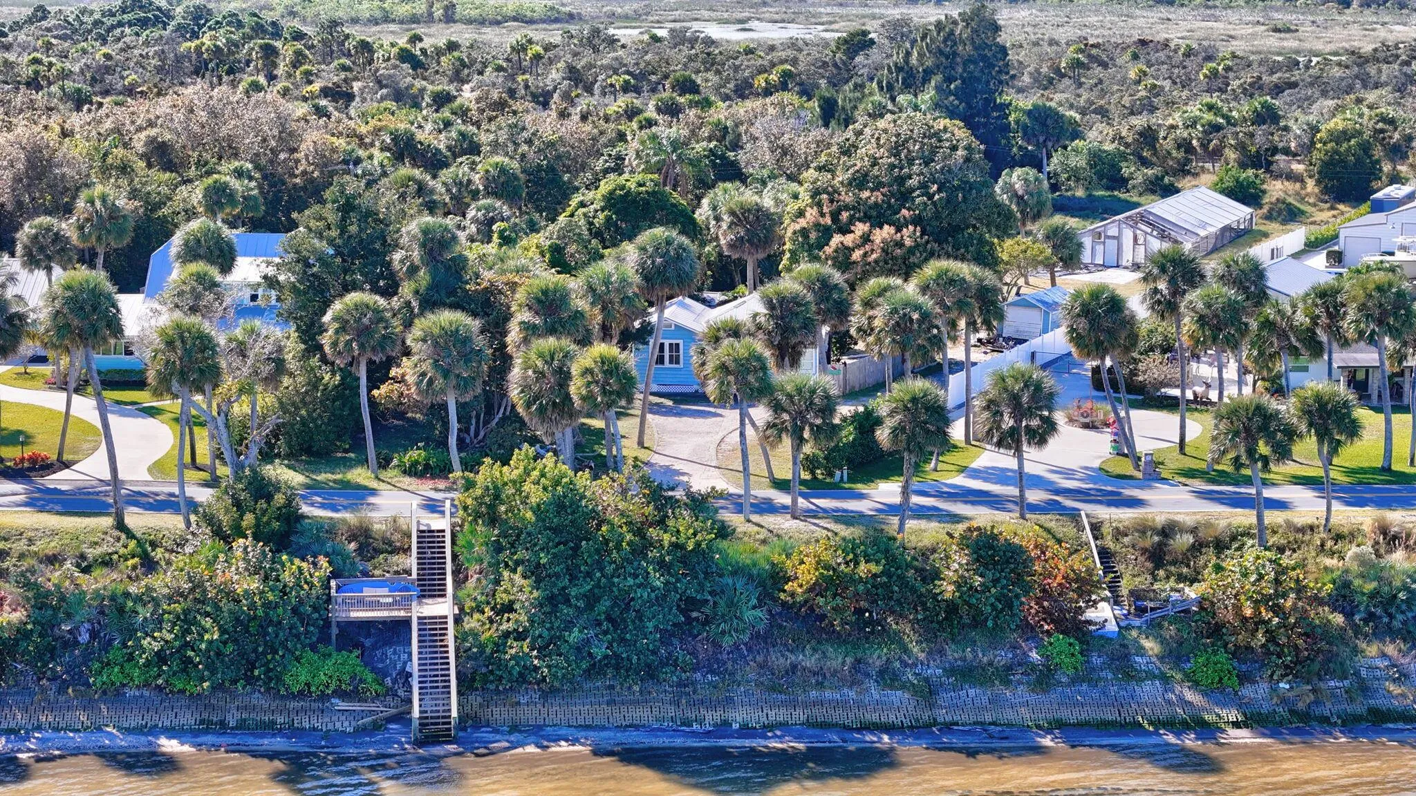 Rare extended dock on Indian River Dr w/lift!! Over $100K in upgrades. Features include, standing seam metal roof, circular paver driveway, extended paver patio with retaining wall, fully fenced yard with double gate – bring RV/boat 220V hookup. Upgraded underground 200-amp electrical panel. AC 2021 with new ductwork. 1500 gallon septic replaced 2021. Sloped lot offers intracoastal vantage from every angle – room to build another home. Butcher block kitchen counters, fireplace, tongue & groove ceilings, 2-20ft shipping containers for additional storage. Lush landscaping including passionfruit, avocado, Barbados cherry, elderberry, dragonfruit, mango, guava, banana. Great investment opportunity/income potential.