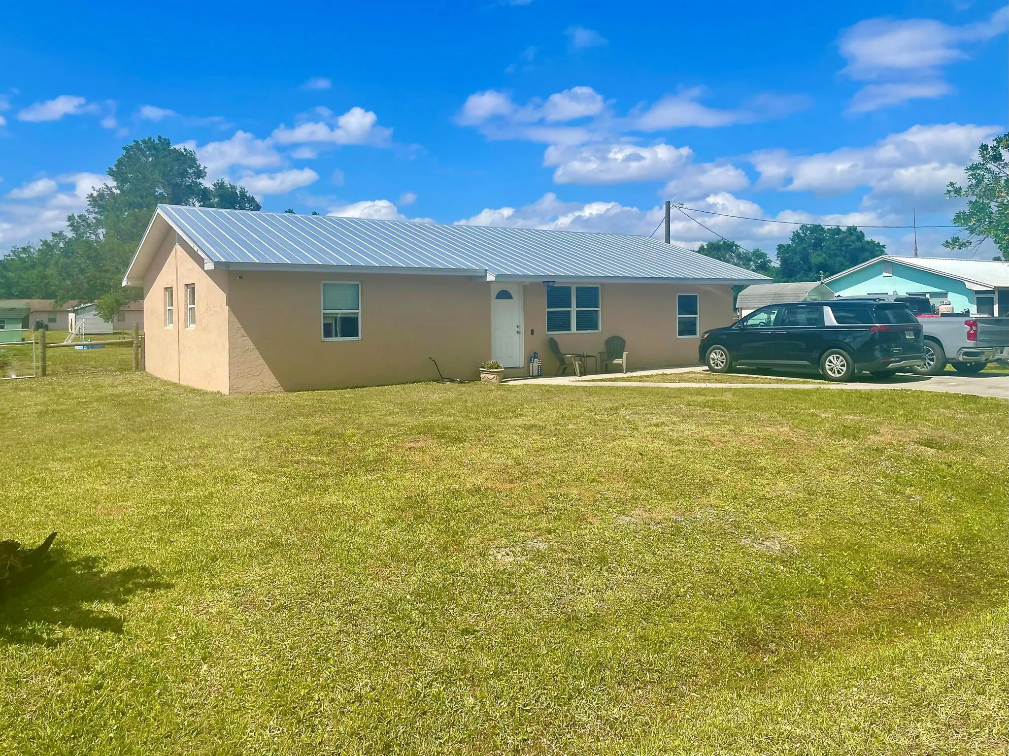 Home seeks Buyer ready to conquer a Full HOME RENOVATION to bring it back to it’s original charm! 3/2 Single Family wd frame on concrete slab, Built 1994 on 1.25 Acres. Anderson dbl pane windows. 2005 Metal roof (unpermitted). NEW in 2022- A/C condenser & handler, water pump, water softener, & ceramic kitchen tile. Enjoy breezy, ‘Scenic Sky’ views from Open front & rear screened porches. 1993 Pole barn on poured slab w/ original electric & plumbing. RV pad w/ 50 amp plug in. Animal pens w/ water. Privately located at end of a non-thru road. Lot to East w/ canal is not included-separately owned. CASH only, NO OWNER FINANCE OFFERS. Home has always been occupied, not finance-able due to renovation needed. PROOF OF FUNDS & APPOINTMENT REQUIRED for tours