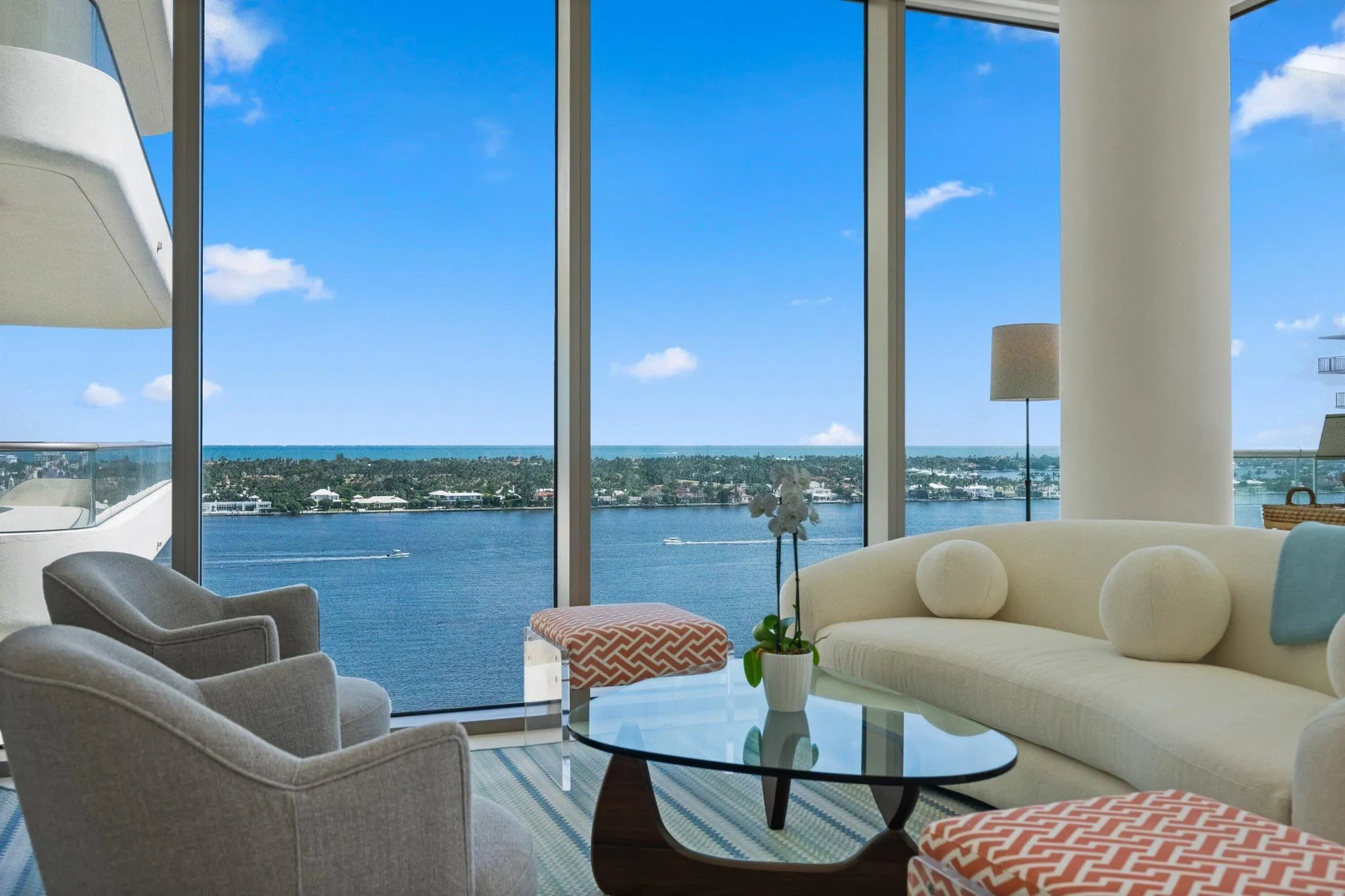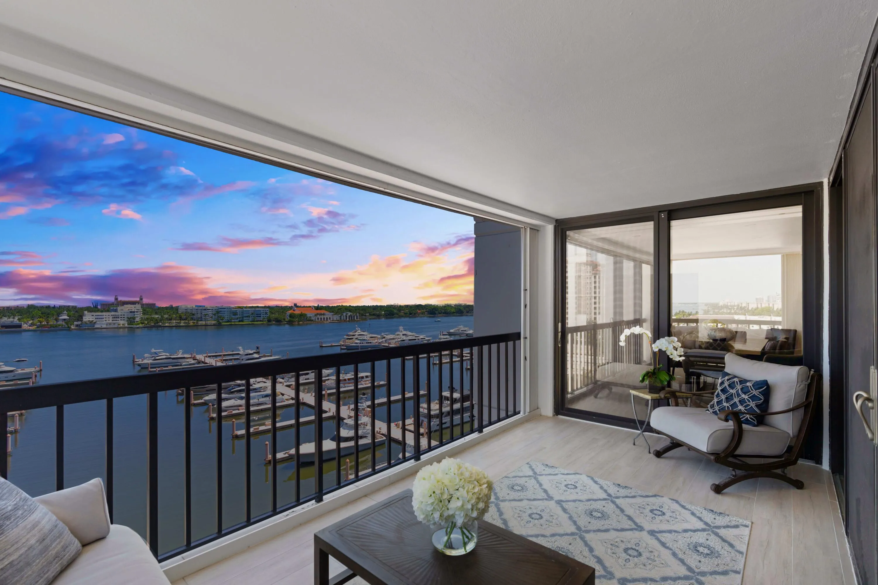 Rare, seasonal / furnished oversized 2 BR, 2.5 BA newer construction residence, huge wrap around covered balcony allowing for both Intracoastal and city views, electric shades throughout, custom built-out closets, gas stove, in unit laundry room, and garaged parking space (plus valet for guests). With only 83 residences, the La Clara is a boutique building where every unit has direct Intracoastal views and bright, cheerful natural light. Located on scenic South Flagler Drive in West Palm Beach, across the Royal Park Bridge – equidistant from the bustling downtown city centre of West Palm and the iconic destination of Palm Beach Island. Amenities include fitness center, outdoor pool with towel service, cinema room, wine room, business center, chef’s entertaining kitchen, sauna and spa.