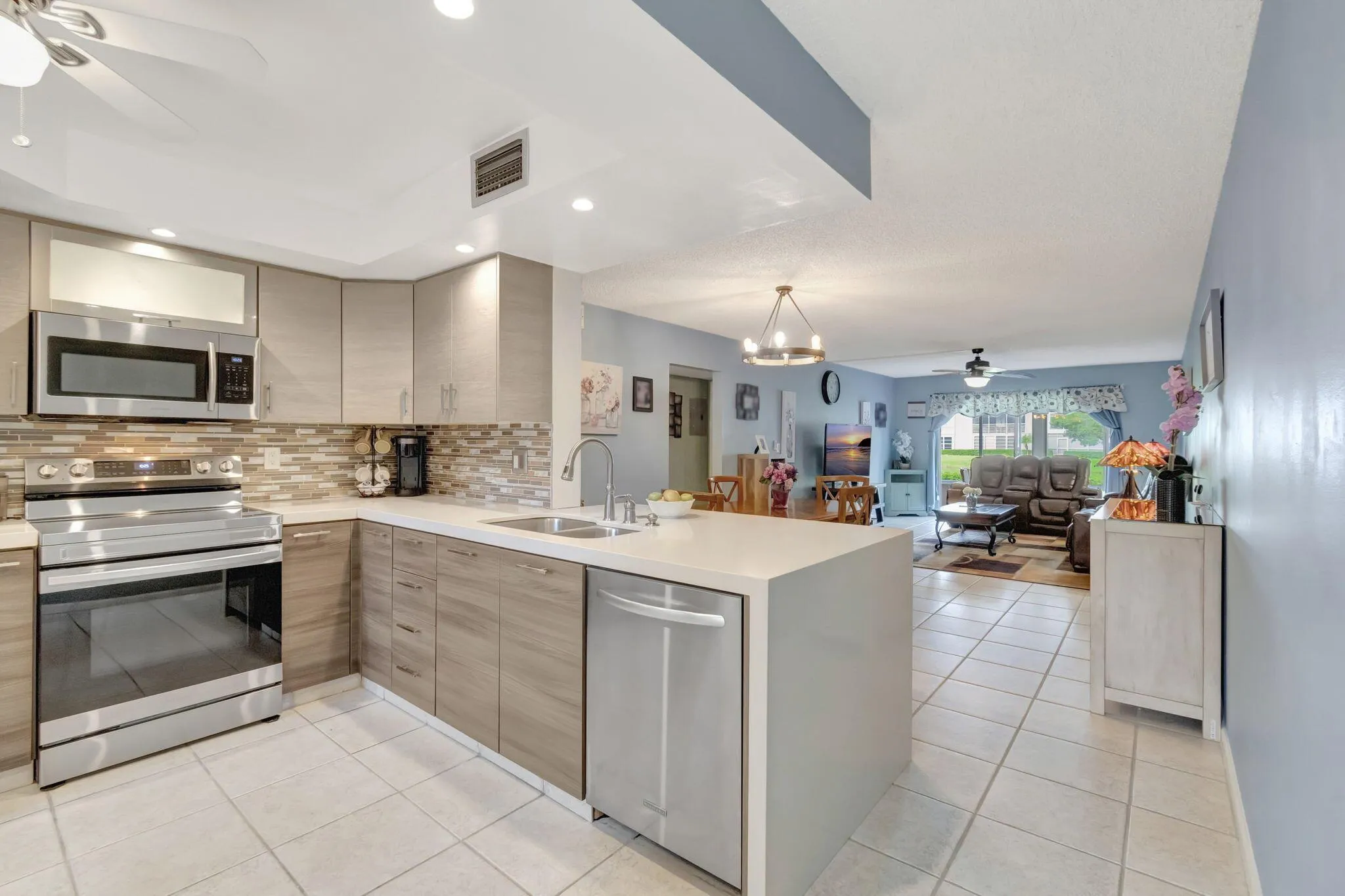 WYNMOOR–SUPER ACTIVE ADULT COMMUNITY! Are you looking for a ground-floor condo with a breathtaking lake view in the most admirable and quietest section? Look no further! We are pleased to present a beautifully modern condo with a stunning lake view in the Portofino section. The unit features ceramic flooring throughout, including the patio, except for the bedrooms. The impact windows and door on the patio are perfect for entertaining family and friends while enjoying the scenic lake view. You can even step onto the grass with an additional private entrance from the patio to the lake. The satellite pool is just steps away from the unit, on the left-hand side.The satellite pool is just steps away from the unit, on the left-hand side.