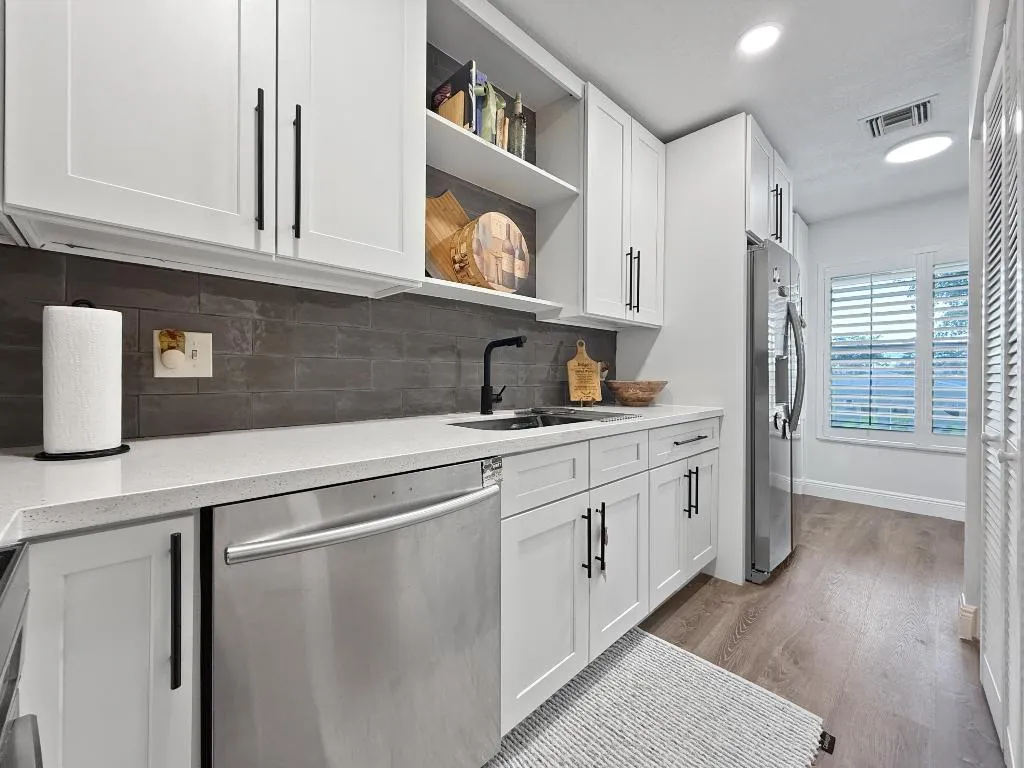 Beautifully renovated 2-bedroom, 2-bathroom second-floor condo. Open floor plan with natural light and beautiful lighting throughout. Modern white kitchen with quartz countertops, brand new appliances and soft close cabinetry. Large, screened balcony. Located in the desirable Pines of Delray West an active adult community with tons of amenities and activities. Atlantic Avenue is minutes away, offering beautiful beaches and top restaurants.