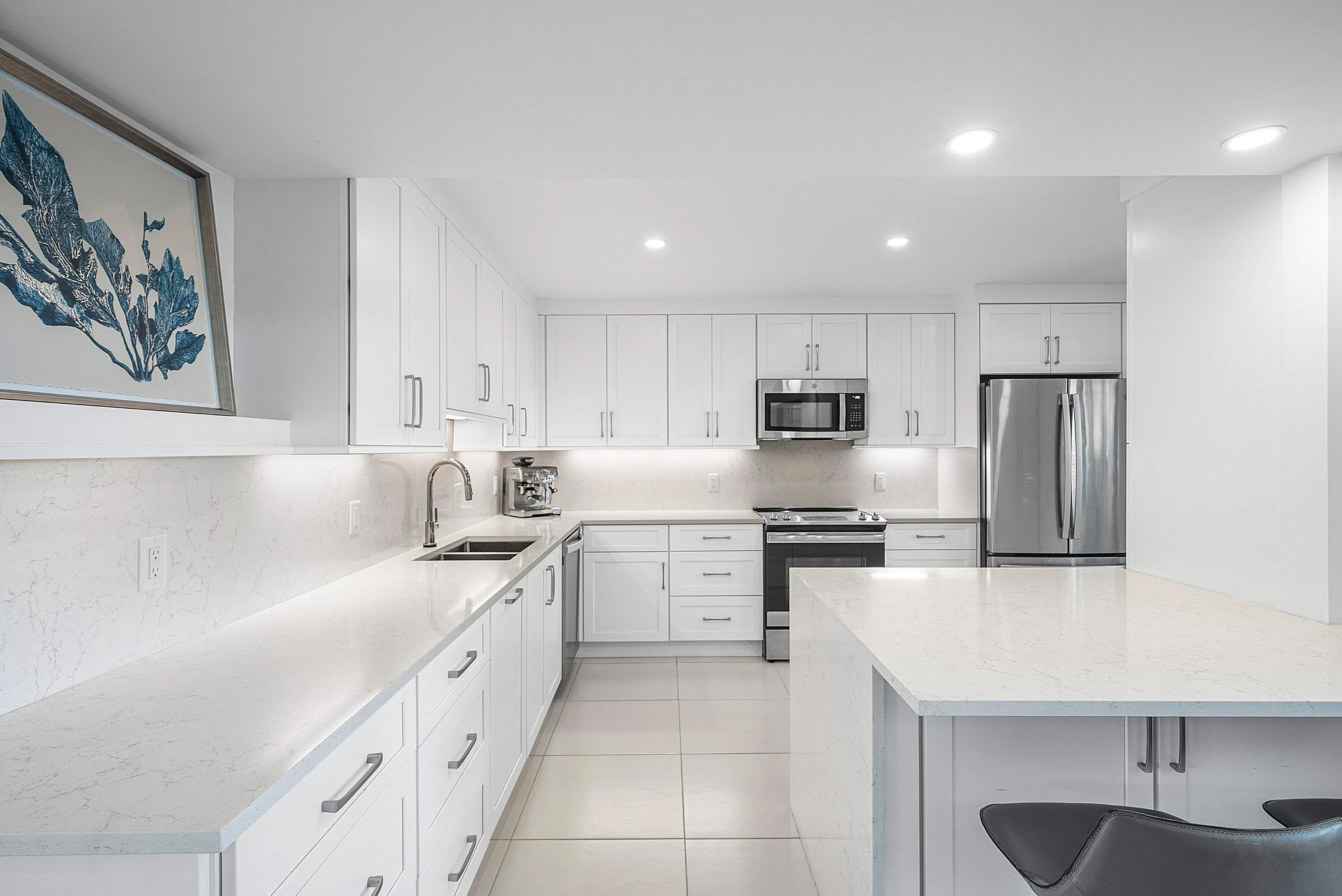 Desirable 1st floor 3-bedroom, 2-bath residence with tranquil golf, garden, & pool views. Completely renovated down to the studs–new plumbing, electrical, walls, flooring, and custom solid wood millwork– true move-in-ready peace of mind. Full impact windows (2025). The light-filled interior features shiplap ceilings in main living areas, shaker-style cabinetry in kitchen and baths, quartz countertops, & high-end appliances. Additional upgrades include Lutron dimmable recessed lighting, ceiling fans throughout, a walk-in primary closet, A/C with mold-preventative UV light, & an extended courtyard! Offered fully furnished & turnkey, with a one-year home warranty included. Enjoy world-class golf, dining, & an active social lifestyle at The Club at Quail Ridge. Immediate enjoyment awaits