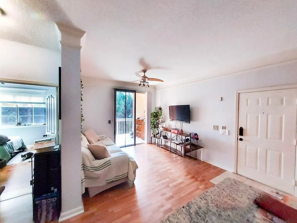 This stunning, fully renovated 1st flr corner condo offers the perfect blend of modern design & everyday functionality. Elegant hickory hardwood flooring runs throughout,& filled with high-end upgrades. Kitchen is a true showpiece featuring quartzite countertops, soft-close cabinetry w/gold-tone hardware, new range hood, stainless steel appliances, & redesigned overhead LED lighting. Bathrooms have been beautifully remodeled, & all trim & molding are updated to create a fresh, polished finish. Add’l features include a newly screened patio, modular custom-organized closets, & hurricane impact windows & doors, inc a 2023 impact-rated kitchen door. Water heater replaced in 2022 & the A/C 2016. The maint fee inc internet & basic cable. Don’t miss this exceptional opportunity!