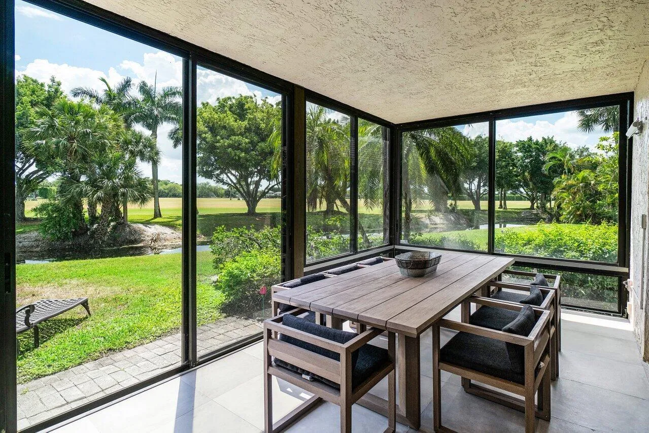 Perched above the prestigious Polo Club, this exceptional Polo Island penthouse residence offers a rare sense of privacy, prestige, and breathtaking views overlooking the lush, tropical grounds and the world-class Global Dressage show grounds. Accessible by private elevator, the four-bedroom, four-bath layout is designed for refined living, featuring new impact glass throughout, new LED lighting, and thoughtfully curated upgrades. The expansive wraparound balconies envelop the entire residence, creating an unparalleled indoor-outdoor lifestyle, perfect for entertaining guests, hosting sunset gatherings, or simply relaxing and soaking up the Florida sunshine while enjoying sweeping vistas and tranquil surroundings from every angle. Roof replaced in 2020. Carport may be converted to garage. Inside, the residence has been thoughtfully updated with quality finishes and high-end appliances designed for both comfort and style. The gourmet kitchen features premium Viking appliances, including an induction cooktop, offering a high-performance space ideal for everyday living and entertaining. Spacious bedrooms with en-suite baths provide privacy and flexibility, while in-unit laundry and abundant storage add to the home’s overall functionality and ease of living. Additional conveniences include two ground-level storage areas, two additional storage rooms on the third floor, two covered parking spaces, and one guest parking space. Residents of Polo Island Drive enjoy the convenience of the private pool and Jacuzzi just across the street, access to the Dunes Preserve, featuring a 5.5-mile paved walking and biking path, as well as a clubhouse with no cost access to the Fitness Centre including tennis and pickleball courts. Whether seeking a seasonal retreat or a full- time residence, this penthouse presents an exceptional opportunity to experience the highly desirable Wellington lifestyle, ideally situated on prestigious Polo Island Drive within the coveted Polo Club.