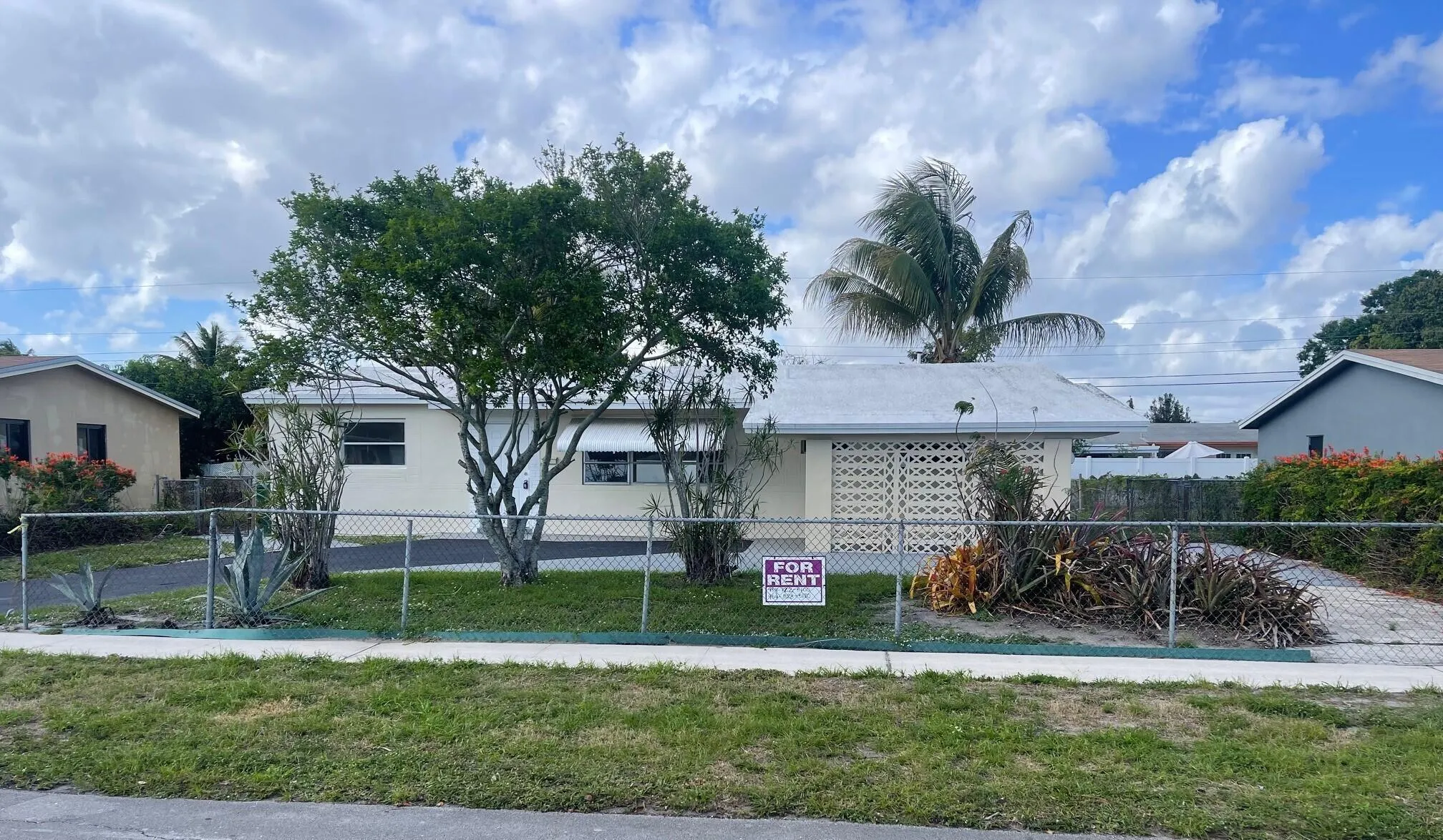 “Location, Location”In the heart of the City Of Sunrise.Two blocks from Sunset Strip downtown shopping with parks and aquatic centers.Nice quiet street. Over 1000 feet of open floor plan with living room, family room, 3 bedrooms, 2 full bathrooms, and Updated kitchen with dishwasher.Double driveway can fit more than 2 cars, large laundry area with washer dryer. Easy approval process! Won’t Last, Will rent fast with reasonable terms. Call today! note- garage was converted to the 3rd bedroom.