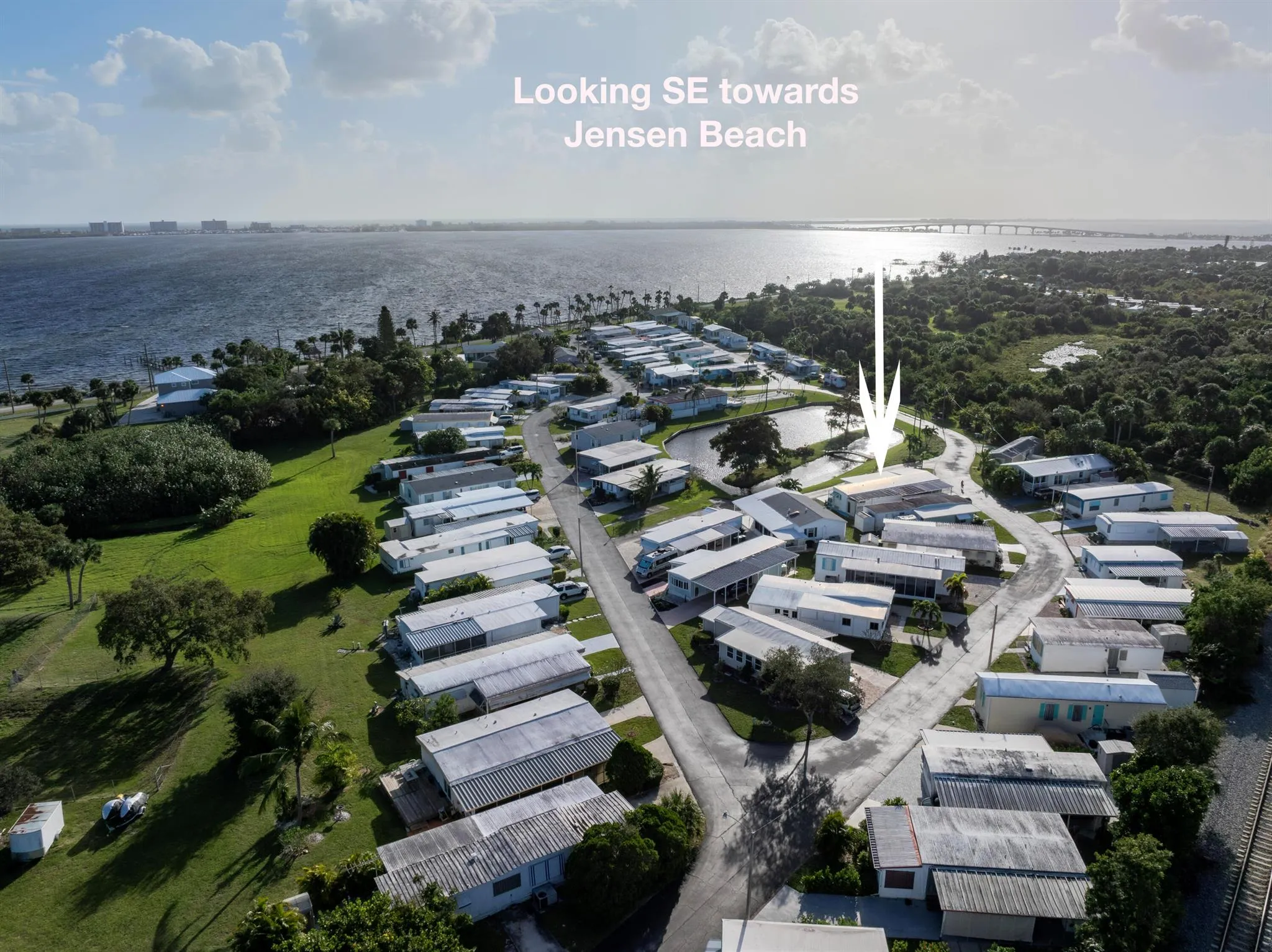 Location. Location. Location. Best location in the Jensen Beach Florida area. Small park directly on the Intercoastal. Only 69 homes total. We own the land. 55+ park . One mile from Jensen Beach village. 3 miles from the ocean. Only $255 / month HOA. Included water , septic , garage removal and lawn service . Definitely the best in this area. Free area for motorcycles, boats , rv’s , trucks etc. 2 bedroom. 2 bath. 2 lanai’s. 2 sheds. Big car port. Directly on pond . Needs nothing. Great condition