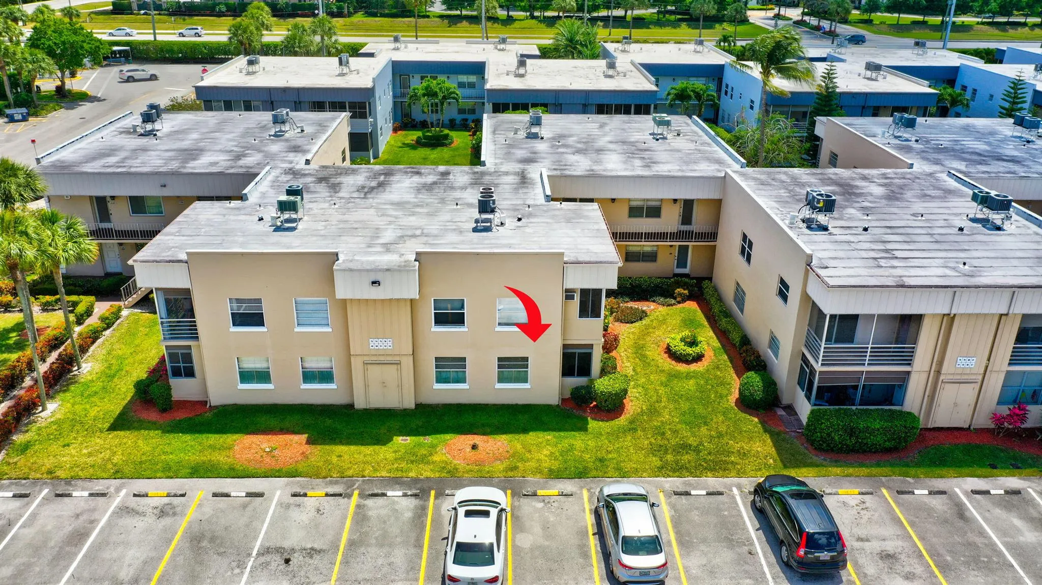 After you enter the Jog Rd entrance gate, continue down Normandy Lane. Then, make a right turn on Flanders Way, then a left turn on Normandy Trail, then a right turn on Burgundy Street.