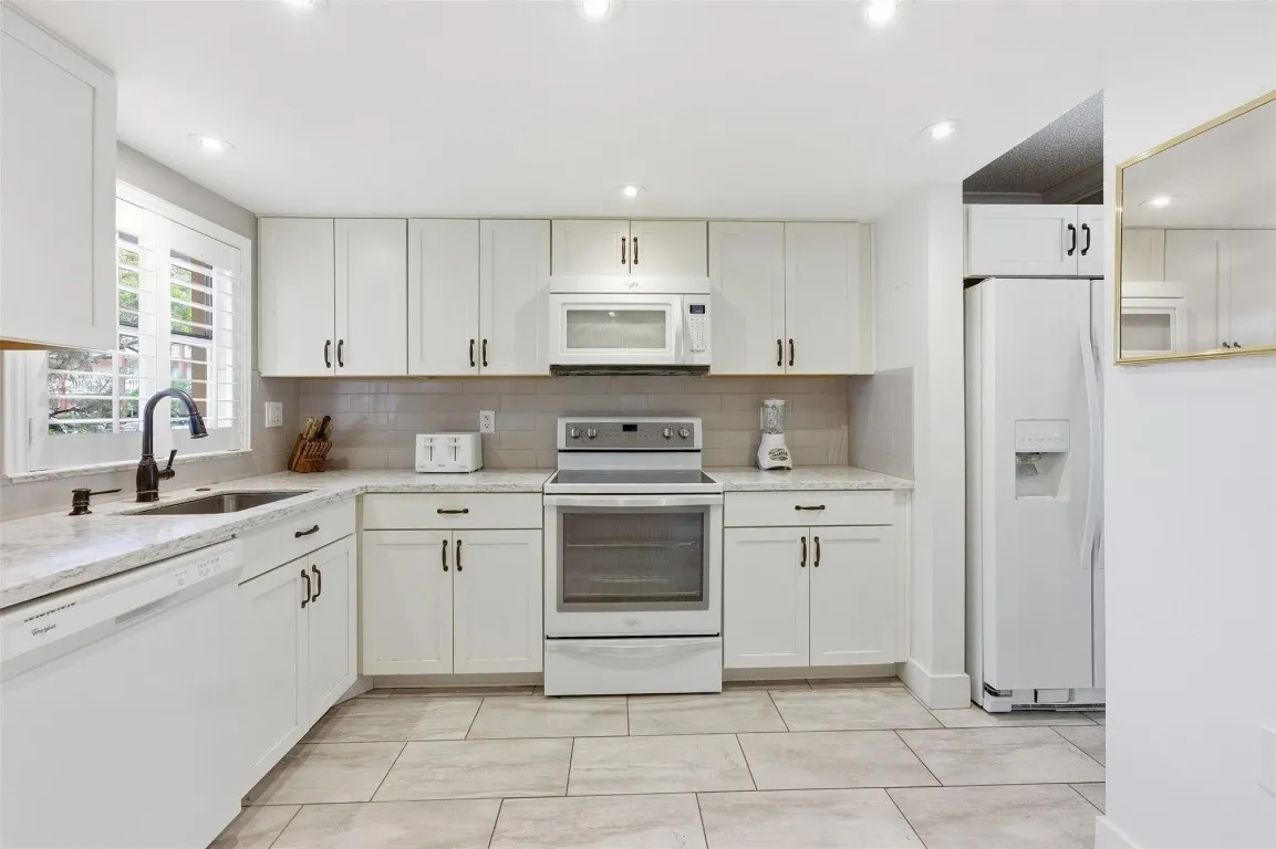 Bright 2-bed, 2-bath condo in Sunrise Lakes 55+ community. Thoughtful and Contemporary renovations include a stunning open concept white kitchen, new tile/laminate flooring throughout, recessed lighting, updated baseboards and crown molding, refreshed modern bathrooms, an enclosed balcony with golf course and lake views, and more. Newer AC (2021). Enjoy a vibrant lifestyle with a large clubhouse, pools, fitness center, shuffleboard, scenic walking paths, and a golf course. Move-in ready, low-maintenance living in a sunny, airy space—perfect for those seeking comfort and community.
