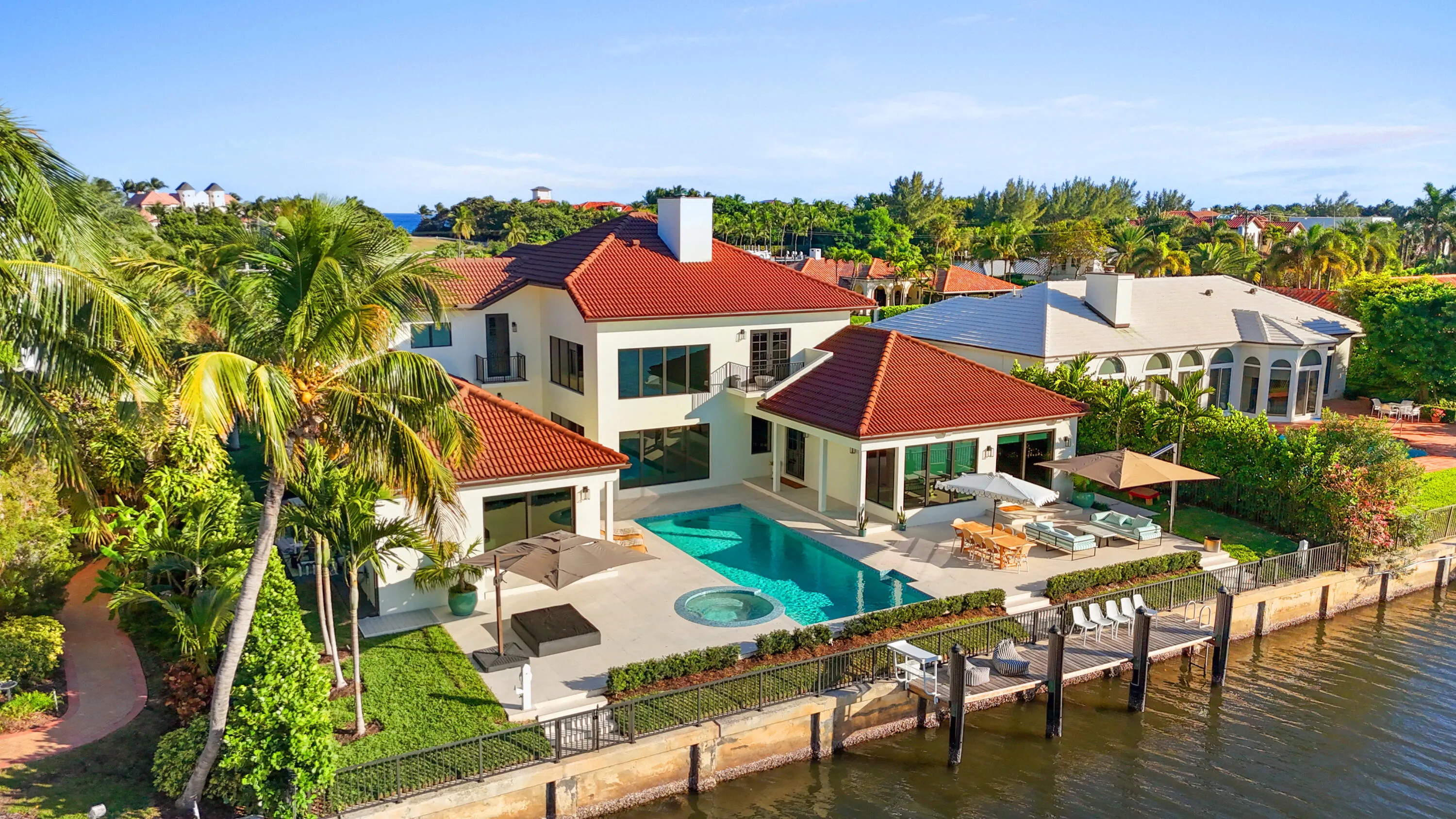 Introducing a brand-new waterfront residence on Hypoluxo Island. Built by Varga Homes and thoughtfully designed by Ava Gray Interiors, this five-bedroom, seven-bathroom coastal estate is scheduled for completion in May 2026. Designed for effortless luxury living, the home features a highly desirable first-floor primary suite, offering privacy, convenience, and serene water views. The spacious retreat includes dual walk-in closets and a spa-inspired bath with elevated designer finishes. The open-concept living areas are flooded with natural light, with expansive glass doors that seamlessly connect the great room and chef’s kitchen to the covered outdoor living space. The kitchen will feature custom cabinetry, premium appliances, and a statement island ideal for entertaining. Upstairs, four additional en-suite bedrooms provide comfort and flexibility for family and guests. Outdoor living is equally impressive, with a resort-style pool, covered loggia, and a brand-new private dock offering direct water access — perfect for boating enthusiasts and enjoying the South Florida lifestyle. Ideally located just minutes from Palm Beach and Delray Beach, and close to the renowned Eau Palm Beach Hotel & Spa, this property offers the rare opportunity to own a new construction waterfront home on sought-after Hypoluxo Island. A refined island retreat blending luxury, comfort, and premier boating access.