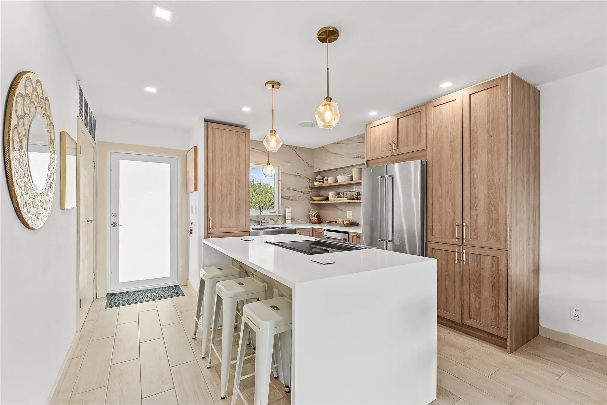 Enjoy coastal South Florida living in this updated 3-bedroom, 2-bath condo in the desirable Palm Aire at Coral Key community in Lighthouse Point. The bright, open layout features neutral tile flooring, spacious living and dining areas, and large sliding doors leading to a private screened balcony with direct water views—ideal for morning coffee or watching boats pass. The kitchen includes granite countertops, stainless steel appliances, custom wood cabinetry, and a breakfast bar that opens to the main living space. Both bathrooms are renovated with modern tile, updated vanities, and a glass-enclosed tub/shower. Dockage is available for lease, offering convenient boating access. Community amenities include a heated pool, clubhouse, BBQ areas, shuffleboard, and landscaped waterfront ground