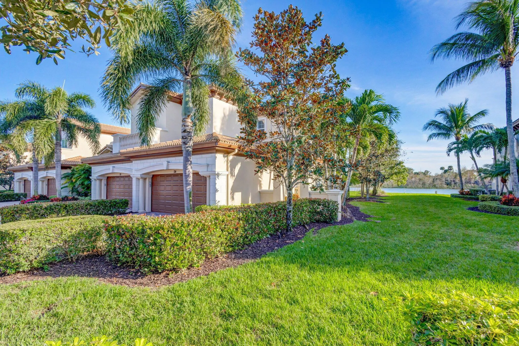 Gorgeous lake views could be yours from this exceptional 2 bedroom, 2 bath + flex room/office (offering custom built outs), 2 car garage one-story carriage home in the resort-style guard gated community of ”Jupiter Country Club”. This great open-concept home exudes high ceilings, is elegantly inviting and provides all of the essentials for easy Florida living. Live comfortably in this energy-efficient home with a tankless water heater, CBS construction & impact glass windows throughout. Countless interior designer upgrades include tray ceilings, crown molding, plantation shutters, porcelain tile flooring, and stylish light fixtures & ceiling fans. Enjoy the sunsets & wide lake views from the private screen-enclosed covered patio. The kitchen boasts white wood cabinetry, granite countertops, a stone tile backsplash, stainless steel appliances, and a large center island with contemporary pendant lighting. The primary suite is spacious with a tray ceiling, crown molding, a huge walk-in closet, and offers access to the patio. The primary bath is spa-like with dual vanities, a makeup sitting area, a large soaking tub, and walk-in shower with a frameless glass enclosure. The spacious second bedroom can comfortably accommodate a king bed for your guests. The den/flex room can be utilized as a convertible 3rd bedroom, TV room, office or exercise room. More features include: All custom closets & organizers, high end Epoxy finish garage floors, garage built ins for ample storage, all new fans & fixtures. *Club/social membership is required. Please inquire about current availability for the of membership.* Jupiter Country Club is a luxury gated community conveniently located within close proximity of I-95 and the FL Turnpike, beaches, shopping, restaurants, parks & nature preserves. Club amenities include a Greg Norman designed golf course, 2 resort-style pools, the newly remodeled Sway restaurant, a state-of-the-art fitness center plus yoga/mat pilates/barre classes, tennis, bocce ball, pickle ball & basketball. Come & join this amazing community in Jupiter! Here are some amazing community features: Golf: An 18-hole Greg Norman Signature golf course is a focal point, offering a challenging and enjoyable experience for golfers of all skill levels. Fitness: The Sports Club features a 12,000 sq ft facility with fitness equipment, a group fitness studio, and locker rooms. A new state-of-the-art fitness center opened in 2025, with a dedicated Pilates studio, an indoor turf area, and Technogym equipment, according to Invited Clubs. Swimming: Two resort-style pools, including a family pool with zero-entry and an adult pool, are available for relaxation and recreation. Tennis: Six Har-Tru clay tennis courts are available for play, with options for singles, doubles, lessons, and clinics. Dining: Two dining options include Sway, located at the Grand Clubhouse, offering lunch, happy hour, and dinner, and K, located at the Sports Club, offering casual bites.