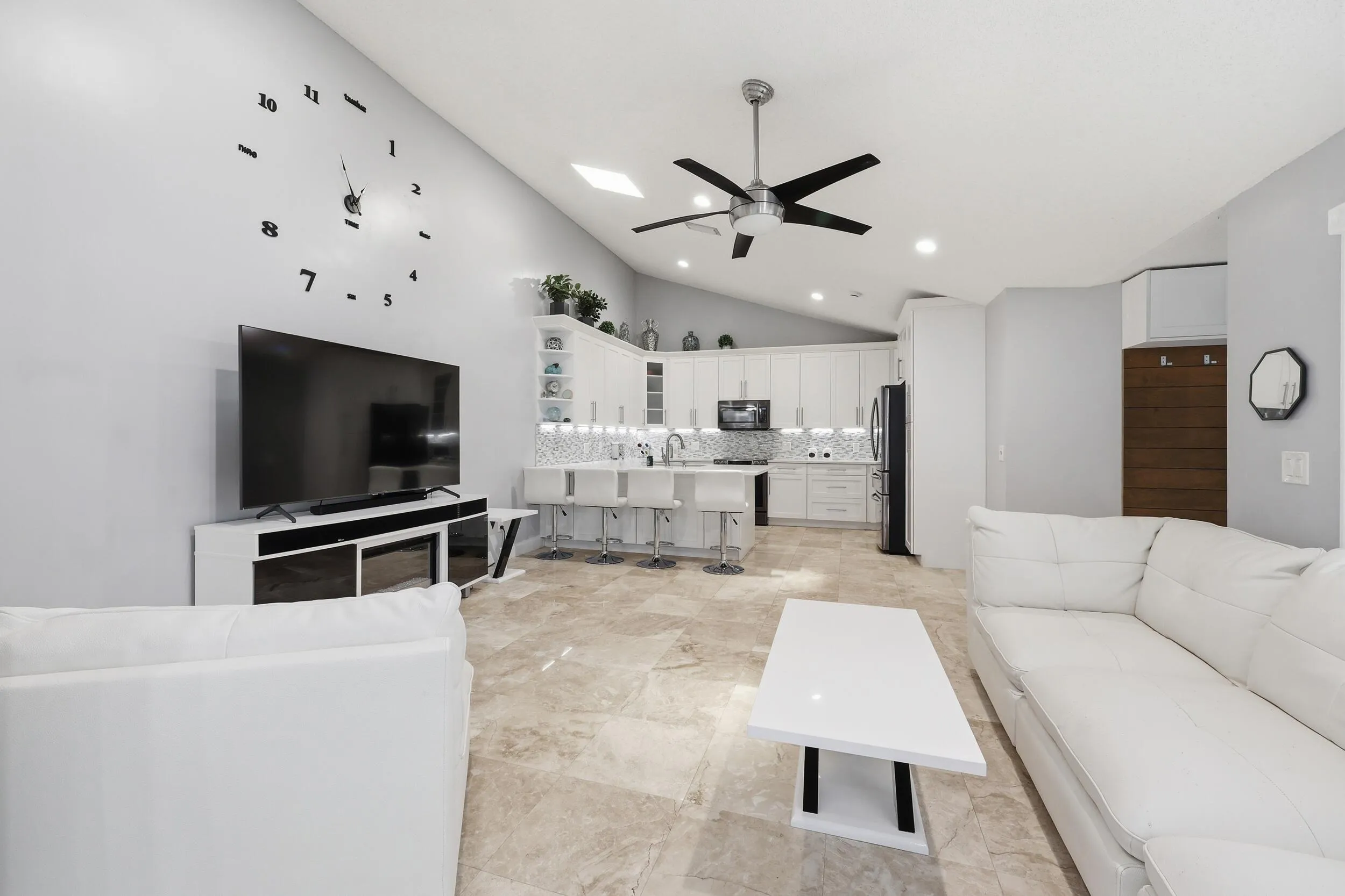 Welcome to this beautifully updated 3 bedroom 2 bathroom townhome. Inside you’ll find a light-filled open layout, cathedral ceilings and upgraded finishes throughout. Creating a space that feels both elevated and inviting from the moment you walk in. Step outside to your own private retreat with a brand new stamped concrete patio, perfect for entertaining or relaxing. Conveniently located minutes from I 95, Florida Turnpike, Shopping and Beaches. Located in a well maintained community featuring two pools, tennis & basketball courts. This move in ready home is a must see!