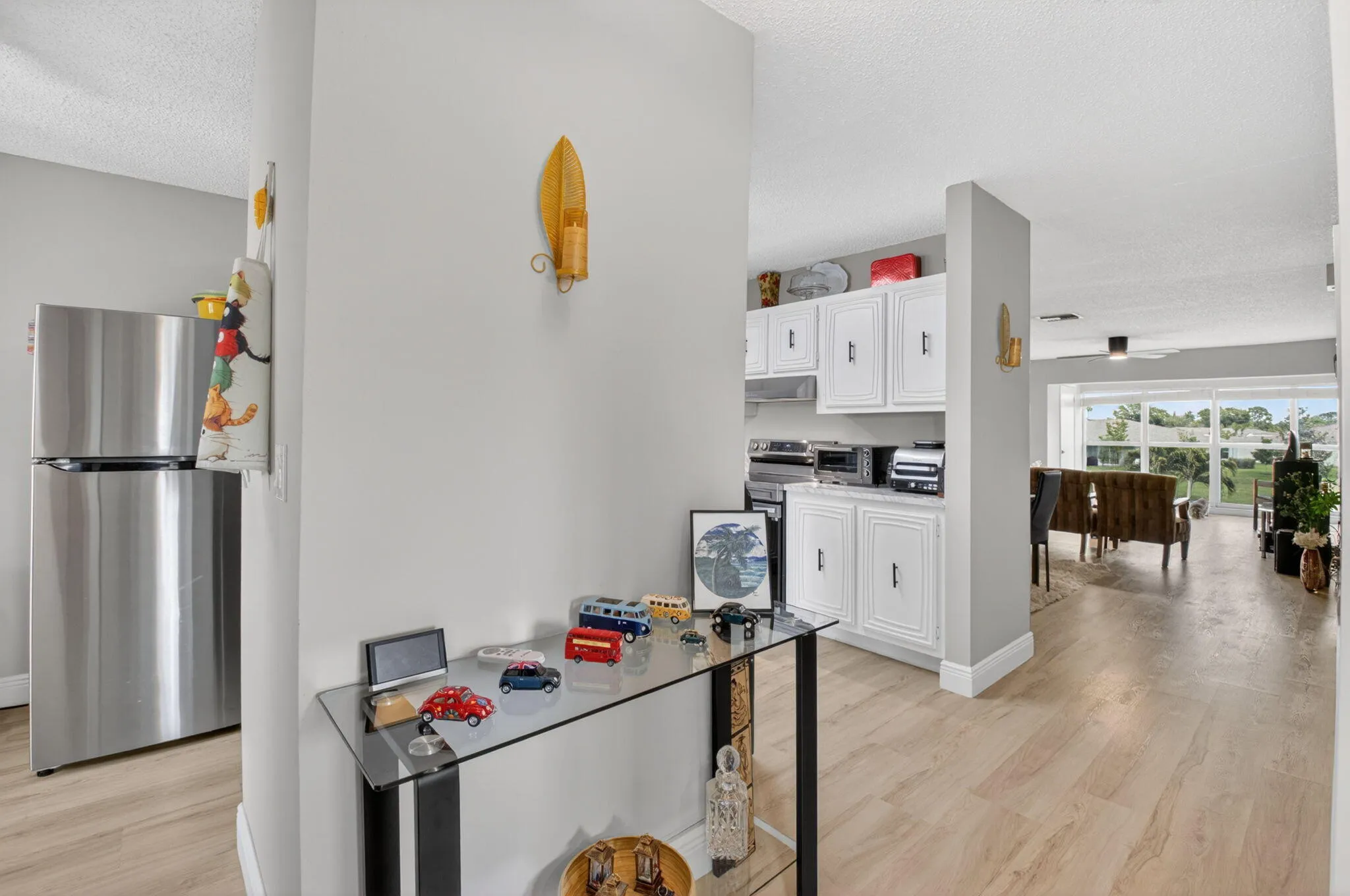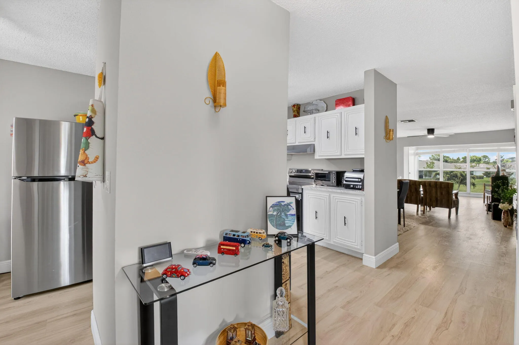 Stunning expansive condo, one bedroom two bath in beautiful Delray Beach . This pristine condo features open floor plans with beautiful granite kitchen countertops, new kitchen cabinets with crown molding new stainless steel appliances gorgeous 32 x 32″ tile with new 5 1/2 inch baseboards threw out the condo, beautiful flat ceilings with lots of recess lighting each room offers a remote control ceiling fan with LED adjust the lighting two bathrooms with tile showers, glass doors, new double vanity, double Vanity double mirrors in master bath, single vanity and matching mirror in guest bath. Great location close to shopping a few miles to a vibrant Delray Beach and Atlantic Avenue. very active 55+ community. Military highway south of Lake Ida Road turn right onto nesting way