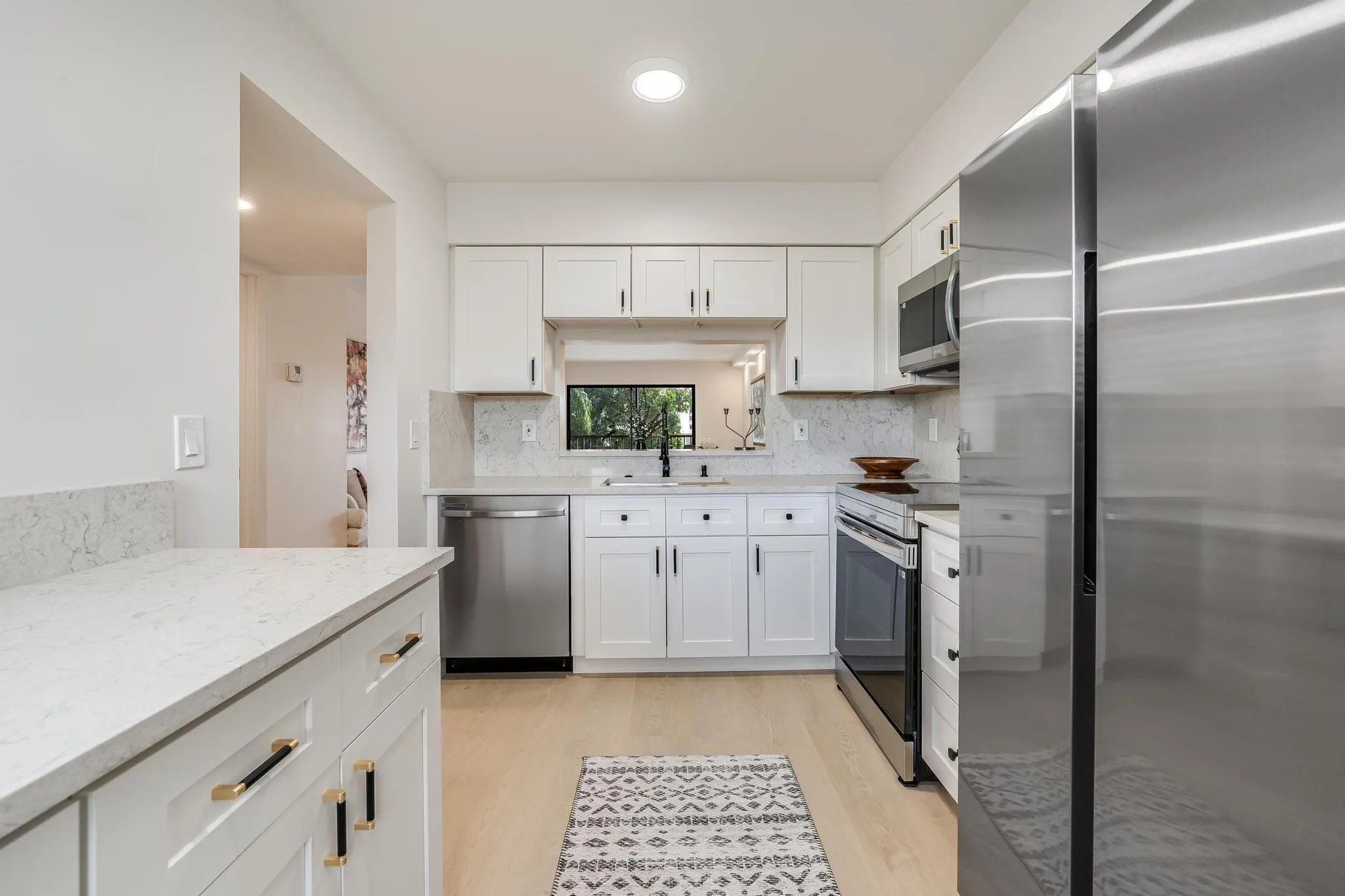 COMPLETE HOME RENOVATION! Stunning 2 Bedroom 2 Bath Lancaster Model in Huntington Lakes. Enjoy a lovely lake view from every window in the unit! Featuring ALL NEW APPLIANCES, AC and Water Heater! Kitchen features real wood cabinets and soft close drawers and pantry. High end quartz countertops with quartz backsplash. Wide plank light oak luxury vinyl floors. Both bathrooms feature tile imported from Italy, elegant mirrors with multiple light settings! Both bathrooms have cabinets with soft close drawers and quartz countertops. Custom built in Primary Bedroom Closets. Separate laundry room with storage closet and cabinets. Huntington Lakes is an active, friendly community with amenities such as indoor pool, pickle-ball, tennis, gym, sauna, theatre, etc. Section 5 is Investor Friendly. |