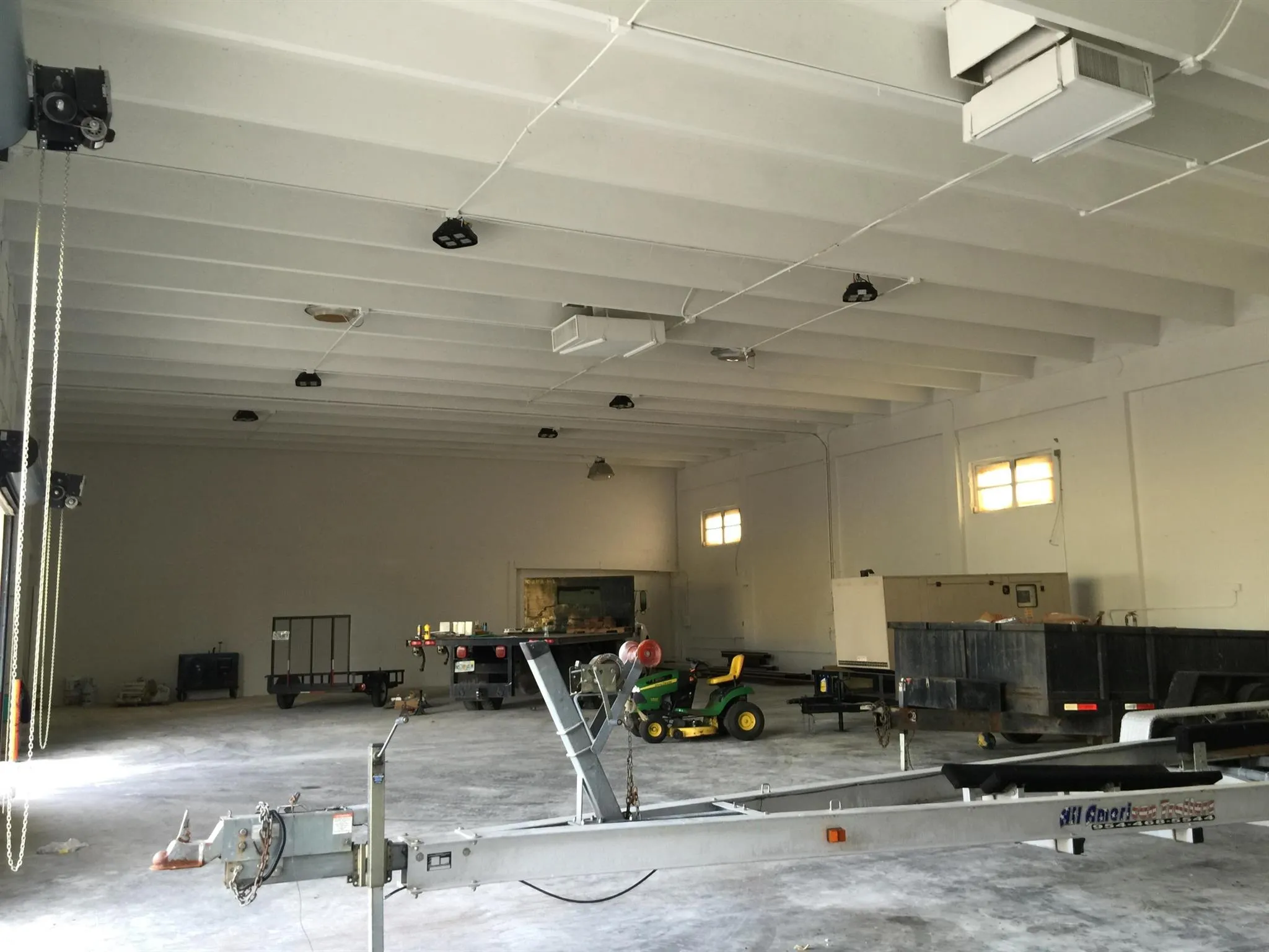 APROX 2400sq ft, (two bays with door access between them ) high ceilings NNN net leasesPrice inclds, taxes ,ins, & cam for this year.Use is for strictly storage or office use.