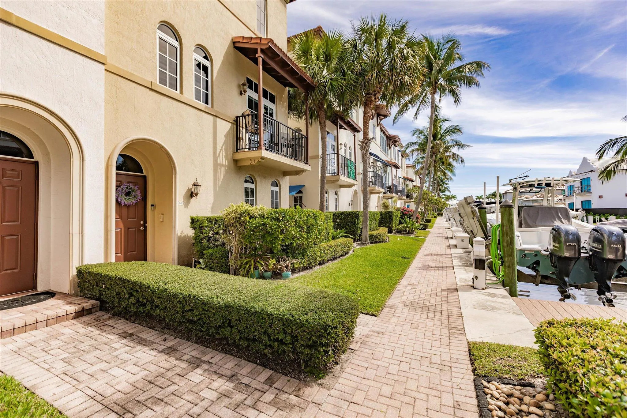 Boater's paradise! Private serene townhome community on the intracoastal just minutes from Atlantic Avenue. This end unit home boasts 9' ceilings, walk-in closets with built-ins, hurricane impact windows and doors, plus an elevator to carry groceries or luggage from first floor to second or third floor. Kitchen has gorgeous granite island, large wine fridge, newer appliances with plantation shutters throughout. Downstairs has a bedroom and full bathroom for guests plus a 2 car garage. Estancia is a gated, pet-friendly community of 30 townhomes offering privacy, security and waterfront lifestyle, with pool, spa and fitness center. Protected boat slip available for long-term lease just steps from your front door! |