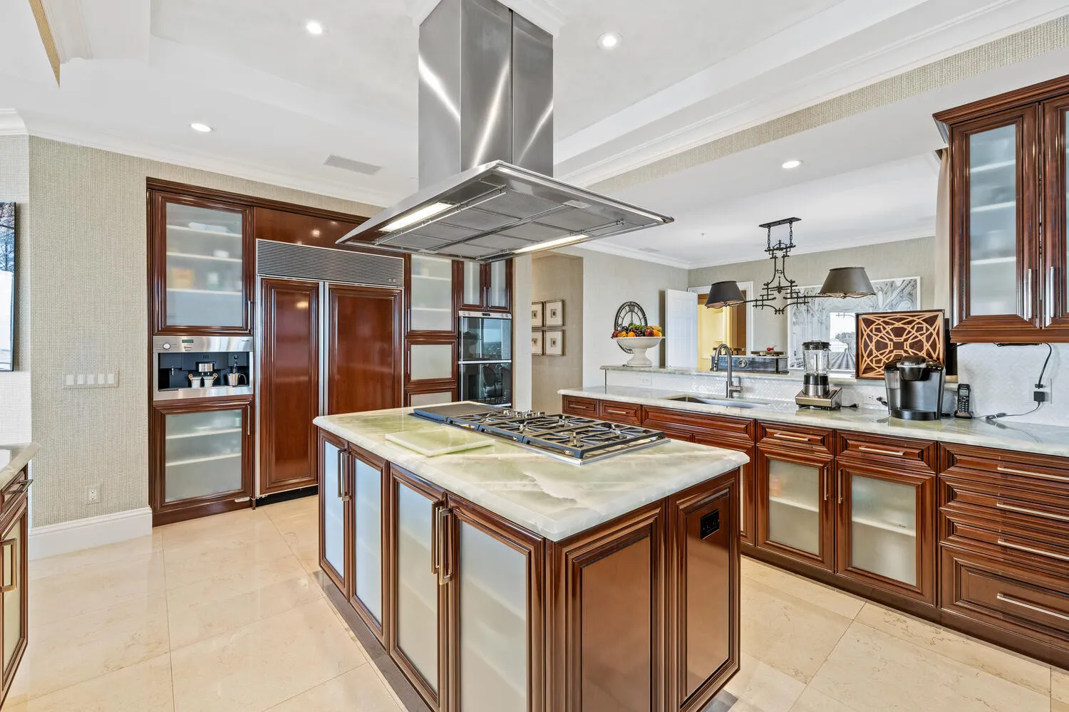 Watermark is considered an intimate, luxury, full service, highly desirable building located on Flagler Drive. Apartment #901 has panoramic views of the Intracoastal, the Atlantic Ocean, the marina and Palm Beach. The private elevator leads you to the elegant foyer and into the main living room-with a separate formal dining room and a wet bar -joining the open chef's kitchen-with a dining balcony and a casual living room-all with spectacular views and done with a neutral palette-extremely tasteful. The main bedroom faces east and has a connecting office, with one of the 4 covered terraces. The additional 3 bedrooms all have ensuite bathrooms and walk in closets. The apartment is elegant and stunning! Lives like a house with plenty of natural light in every direction. |