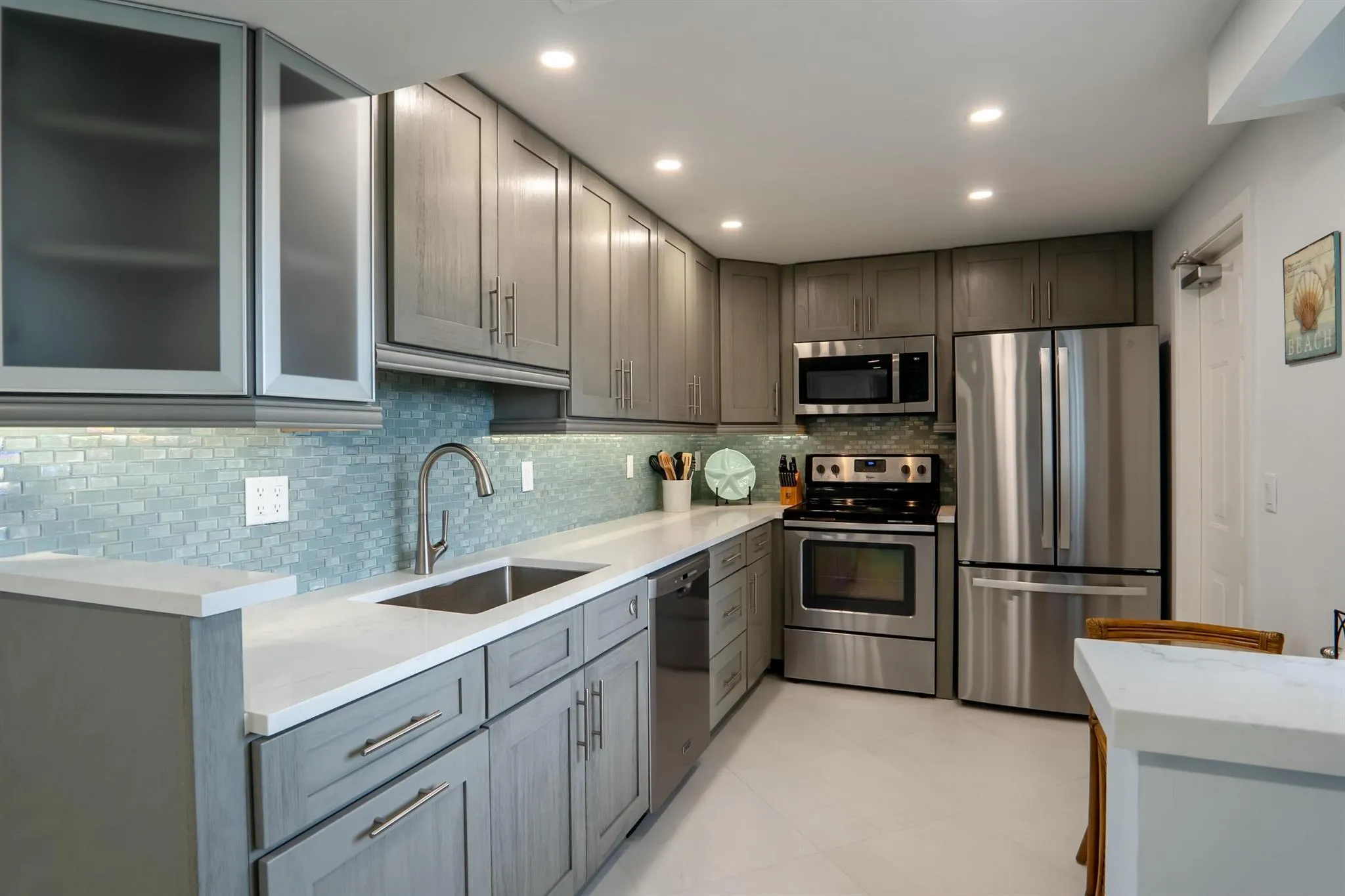 This spectacular newly renovated condo is located in a prime beach access block in the heart of Jupiter. Just steps from the beach, boating, the Riverwalk, Intracoastal Waterway, and an array of nearby restaurants, shopping, live theatre, music, and local events, this home offers the perfect coastal lifestyle. Enjoy golf courses nearby. Carlin Park Pickleball courts-quick walk or bike ride away. The prominent Jupiter Ocean & Racquet Tennis Center is located on-site. Catch stunning sunrises from your 20-foot long east-facing patio with an ocean peek. Newly remodeled kitchen features stainless appliances, quartz countertop, and stylish glass tile backsplash. Bathrooms have been updated with quartz finishes. Entire condo boasts large tile flooring throughout, LED lighting, custom closets. |