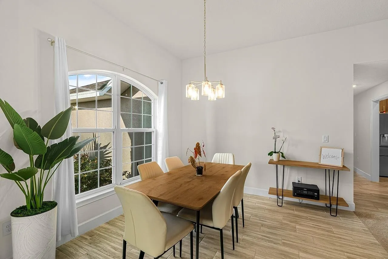 UNLIKE OTHER ADAMS HOMES CURRENTLY FOR SALE FOR MORE MONEY, THIS HOME HAS OVER $30,000+ IN UPGRADES. Just some of the features include a custom stone front entry w/upgraded coach lamps, plank tile flooring in all wet areas, dining room & den, quartz counter tops w/integrated SS farmhouse sink w/upgraded faucet, shaker style cabinetry, new LG French door frig, washer & dryer, shower w/glass doors & garden tub in the primary bath, volume ceilings, 200+ sq ft covered back porch, plenty of room for a pool w/existing pool bath & so much more. All conveniently located just minutes to I-95 & the new Bucees in a vibrant community offering clubhouse, pool, pickleball, volleyball, playground, picnic area & fitness center with a low HOA of just $11 per month. |