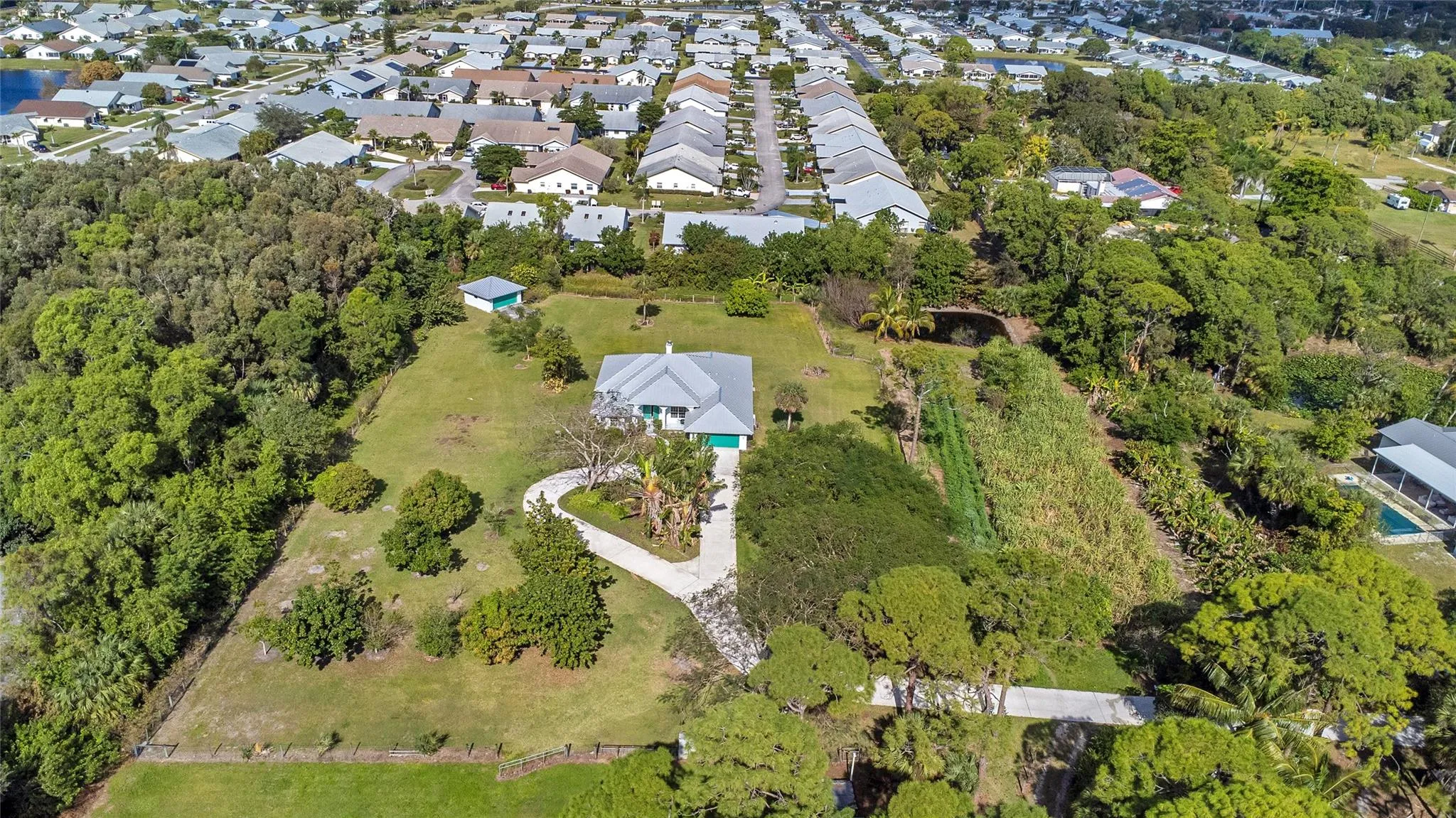 FIRST TIME ON THE MARKET! This rarely available 5-acre property offers the best of both worlds—spacious, private grounds within 10 minutes to downtown, The Square, The Breakers, The Kravis Center, and all that West Palm Beach has to offer. The home, built in 2006, boasts a bright and airy layout with modern finishes, a built-in entertainment center, and a home office. Step outside to lush greenery, with agricultural zoning allowing for pets, livestock, and gardening. Enjoy your tropical oasis with numerous fruit trees, including mango, lychee, peach, sugarcane, and many more. This property is perfect for those seeking a peaceful lifestyle with city conveniences at their fingertips. Don’t miss this rare opportunity to own 5 acres of paradise so close to it all! |