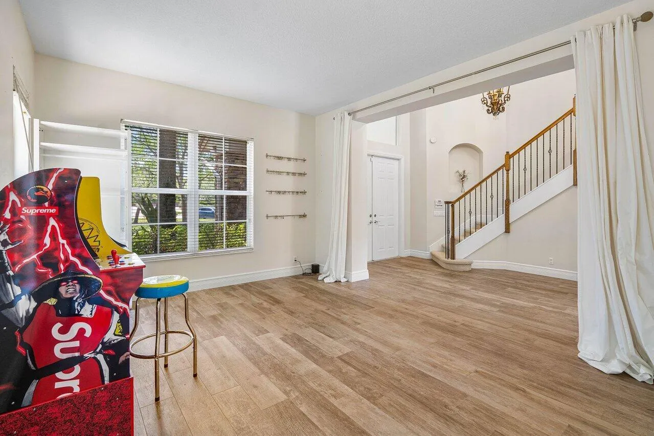 Welcome to a true masterpiece of luxury and modern living, located in the prestigious Woodslanding community. This extraordinary 6-bedroom, 6-bathroom home sits on a sprawling half-acre corner lot, complete with a 3-car garage and a dazzling pool. Offering an exquisite blend of style and functionality, this property is ideal for those seeking elegance in a tranquil setting. Upon entering, you are greeted by newly installed wood-look tile flooring (2022) that flows seamlessly throughout the main level, paired with upgraded baseboards to create a polished, contemporary aesthetic. The open-concept kitchen is a chef's dream, beautifully remodeled in (2020) with solid wood cabinetry, quartz countertops, undercabinet lighting, and stainless steel appliances. A large center island and |
