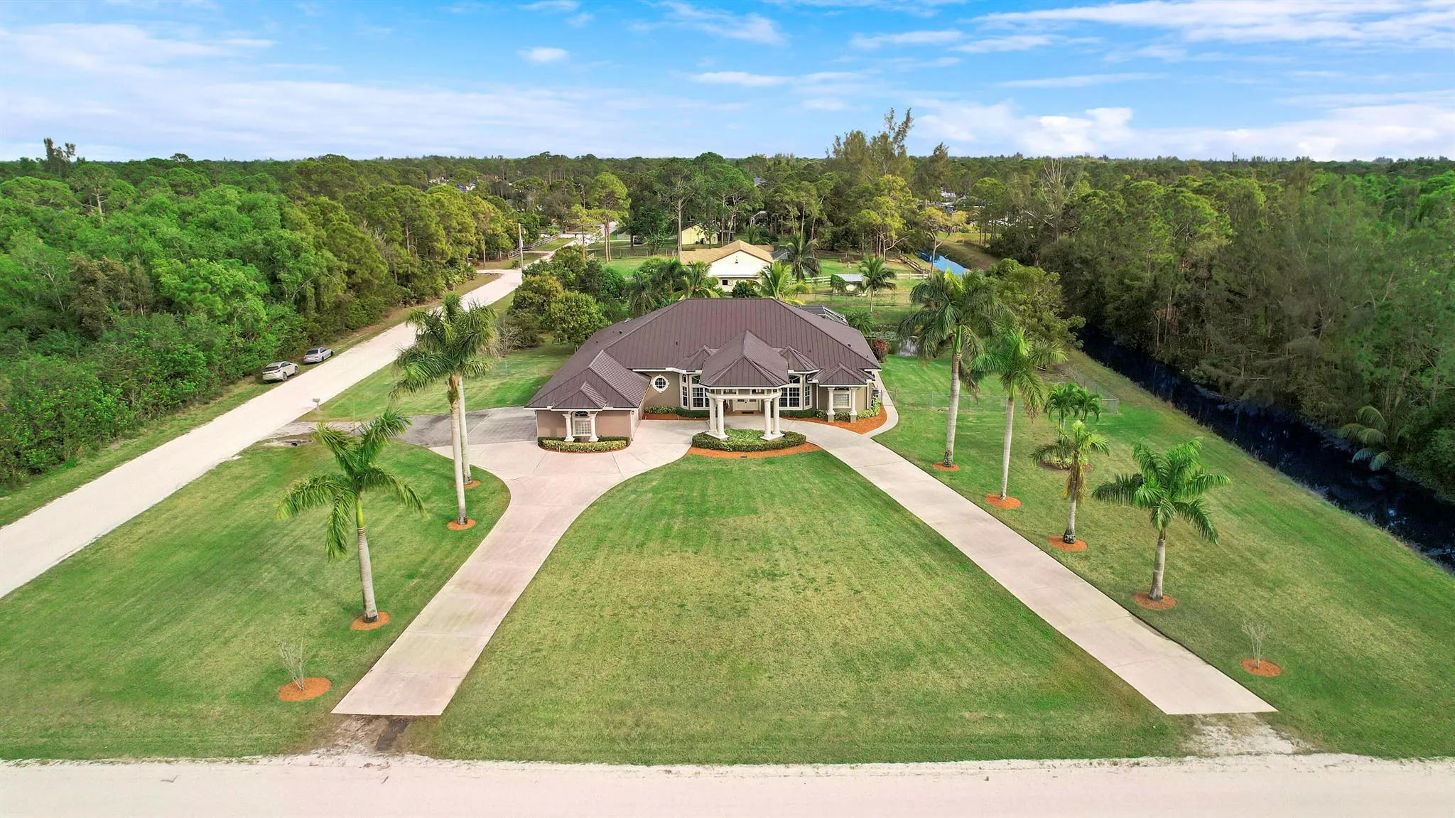 Welcome to your dream home in The Acreage! Nestled on a sprawling 2.5-acre property, this beautifully updated estate combines modern sophistication with serene outdoor living. A brand-new roof (2023) ensures lasting durability, while the 4-car attached garage and three driveways offer ample parking for family and guests alike.Step inside to discover an elegant interior featuring 4 spacious rooms with generous closets, a versatile flex room perfect for a 5th bedroom or home office, and a master suite that redefines luxury! The master retreat boasts coffered ceilings, rich wood flooring, and a spa-like en-suite bath with dual sinks, |