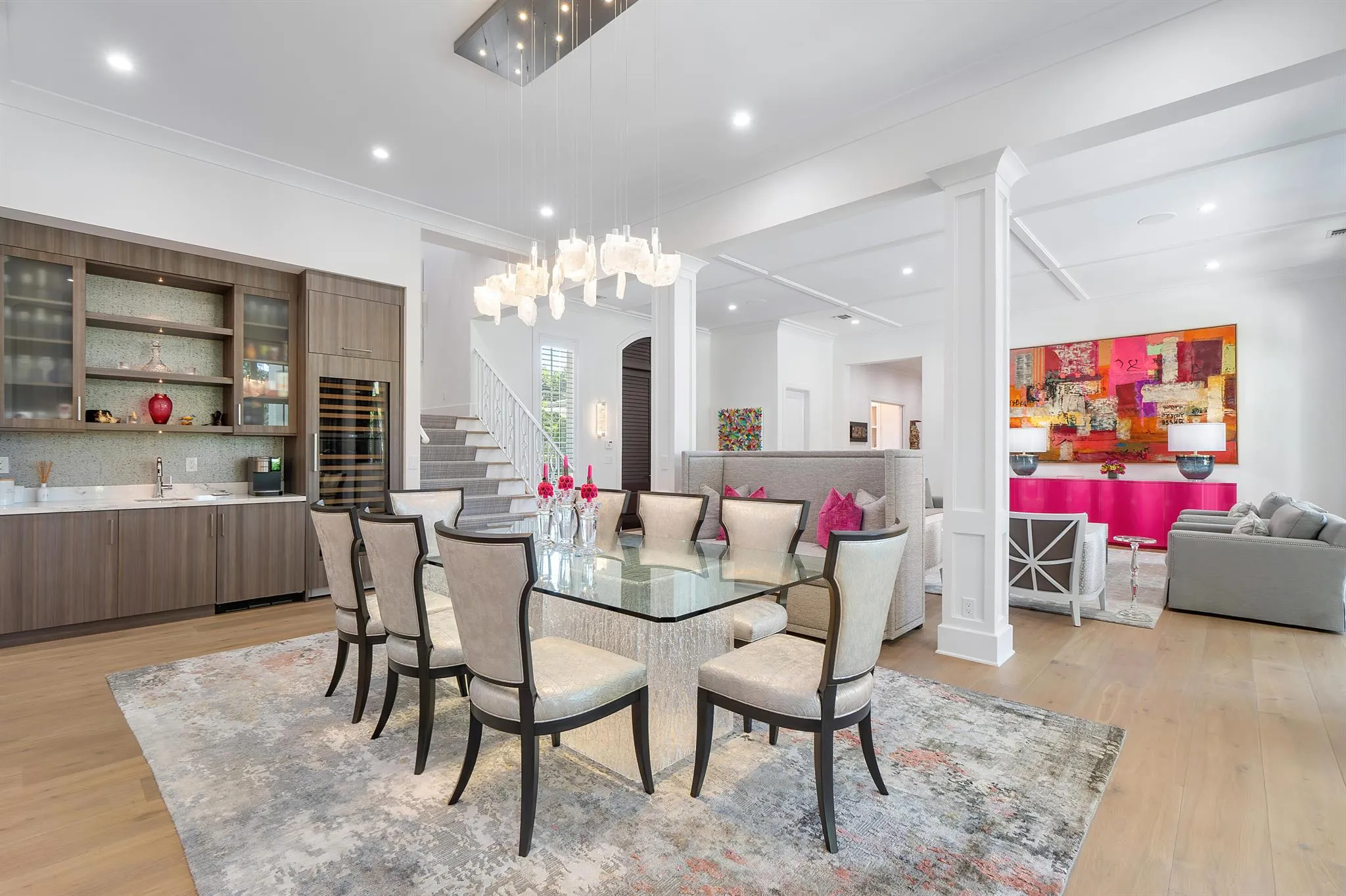 Discover luxury, this 5 bedroom/7 bath home is in the coveted & gated Palm Beach Polo Club. Built in 2016 & sited on a 1/3 acre double lot, enjoy unobstructed views of the golf course & fairways. Perfect for entertaining & relaxed living, soaring ceilings and a open concept floor plan provide a spacious flow throughout the home. Ground level primary suite & a guest suite, 3 2nd-floor guest suites with balconies, there's plenty of room for family & friends. A lushly landscaped backyard oasis is sheltered by a grove of Blue Cypress trees, the pool/spa & outdoor kitchen allow for enjoyable al fresco entertaining. Gourmet kitchen with high-end appliances, large center island & wine cooler. 3-car garage, impact-resistant windows, newly installed elevator, home generator, Smart House technology |