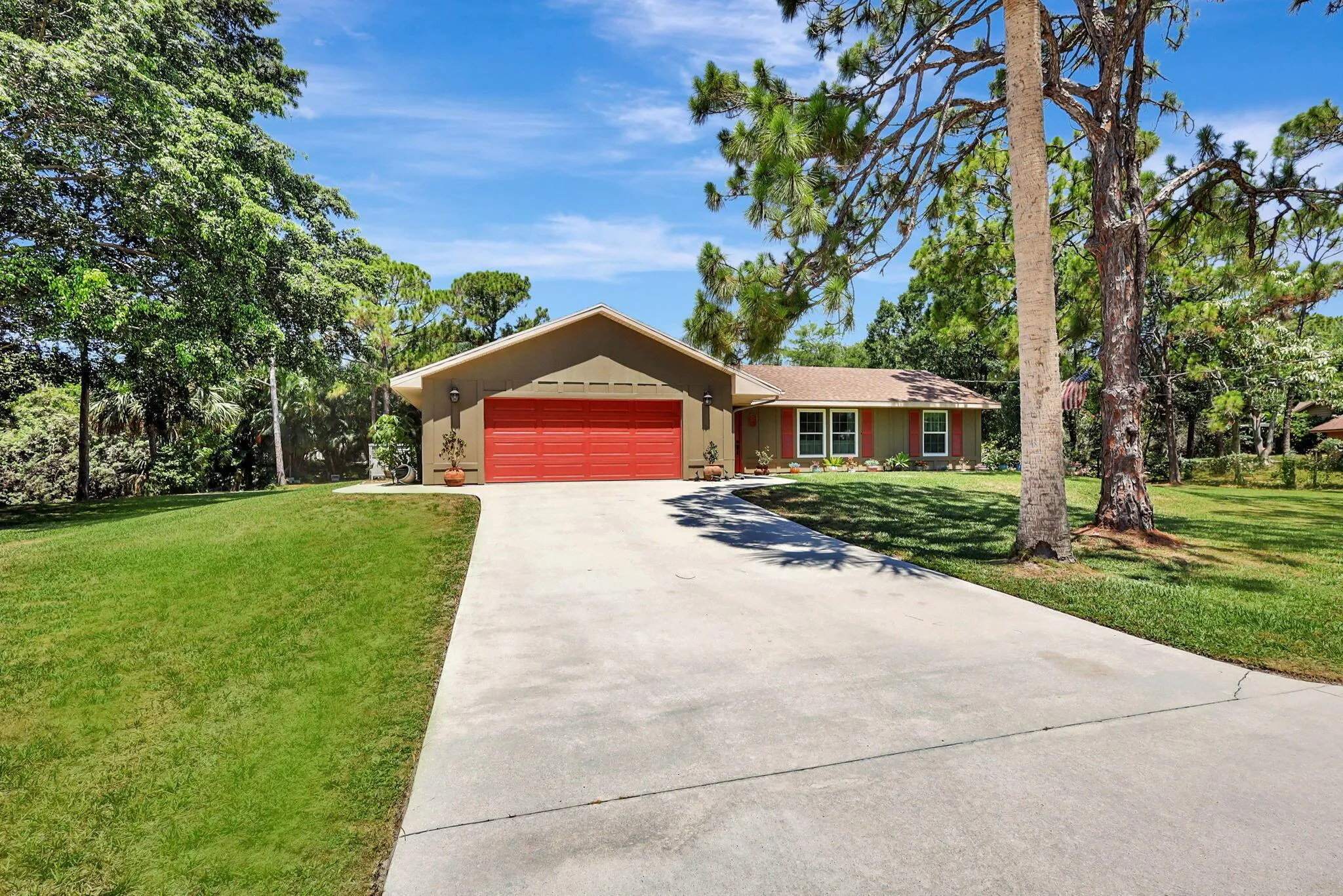 This unique residence, immaculately maintained and updated by its original owner, combines modern comfort with timeless appeal on a spacious 1.23-acre, moderately wooded lot. The home boasts all-new Miami-rated impact windows and doors (2023), brand new A/C and ductwork (2024), newer architectural shingle roof, and all newly installed siding. Updated kitchen cabinets richly complement french doors which lead into the large, newly resurfaced, fenced-in private pool and freshly painted deck. Enjoy the view of your meticulously landscaped yard, complete with fruit trees, a private pond, and plenty of space for the kids to play. As a non-HOA neighborhood, Palm Beach Country Estates provides a sought-after blend of freedom, seclusion, and accessibility - close to top-rated schools, shopping, |