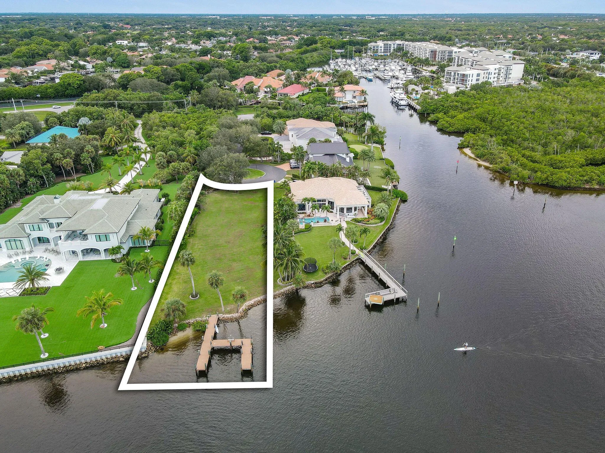 A secluded, oversized homesite in the prestigious and rarely available enclave of Snook Hole, directly on the Intracoastal Waterway with 100 feet of waterfrontage. In this gated and highly coveted location in Palm Beach Gardens, this large homesite is nestled at the end of a low-density cul-de-sac and surrounded by lush greenery. Perfect for the ultimate outdoor and boating lifestyle, the private dock is equipped with electricity and water and can host up to a 70' vessel. This ample amount of serene waterfront space would accommodate a large new construction residence, affording the ideal circumstances for a perfectly designed oasis customized to your unique specifications. Or entertain the existing building and undergo your own personalized upgrades and charm. |