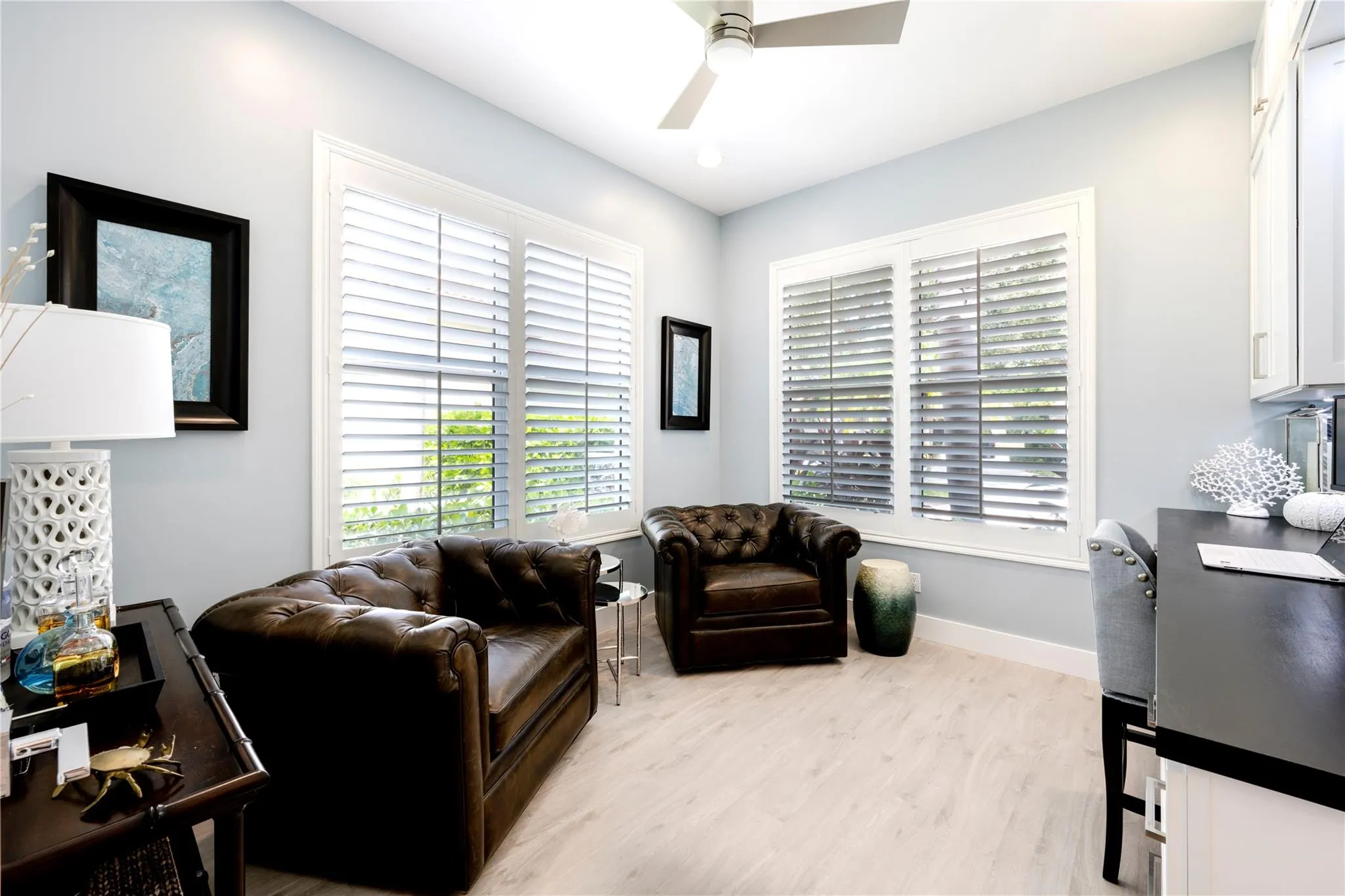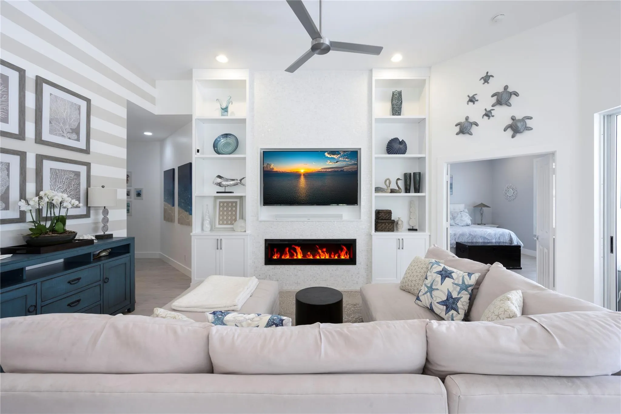 Welcome to your own resort in the quiet, gated community of Oaks East. Completely renovated Divosta Carmel model with prime lake view & rear southern exposure. Unique custom designs include: kitchen w/ GE Cafe appliances, quartz countertops, pearl backsplash; living room built-ins and fireplace; elevated primary bath design; primary built-in closets with floor-to-ceiling storage; plantation shutters throughout; and built-in office space. Completely updated with new roof, impact windows and accordion shutters, impact garage, full plumbing re-pipe, AC, and much more. Remodeled pool includes lagoon finish, glass tile water wall and sun shelf, marble pool deck, and custom screen enclosure. Property features tropical landscaping with lighting, paver driveway and paver side patio with hot tub. |