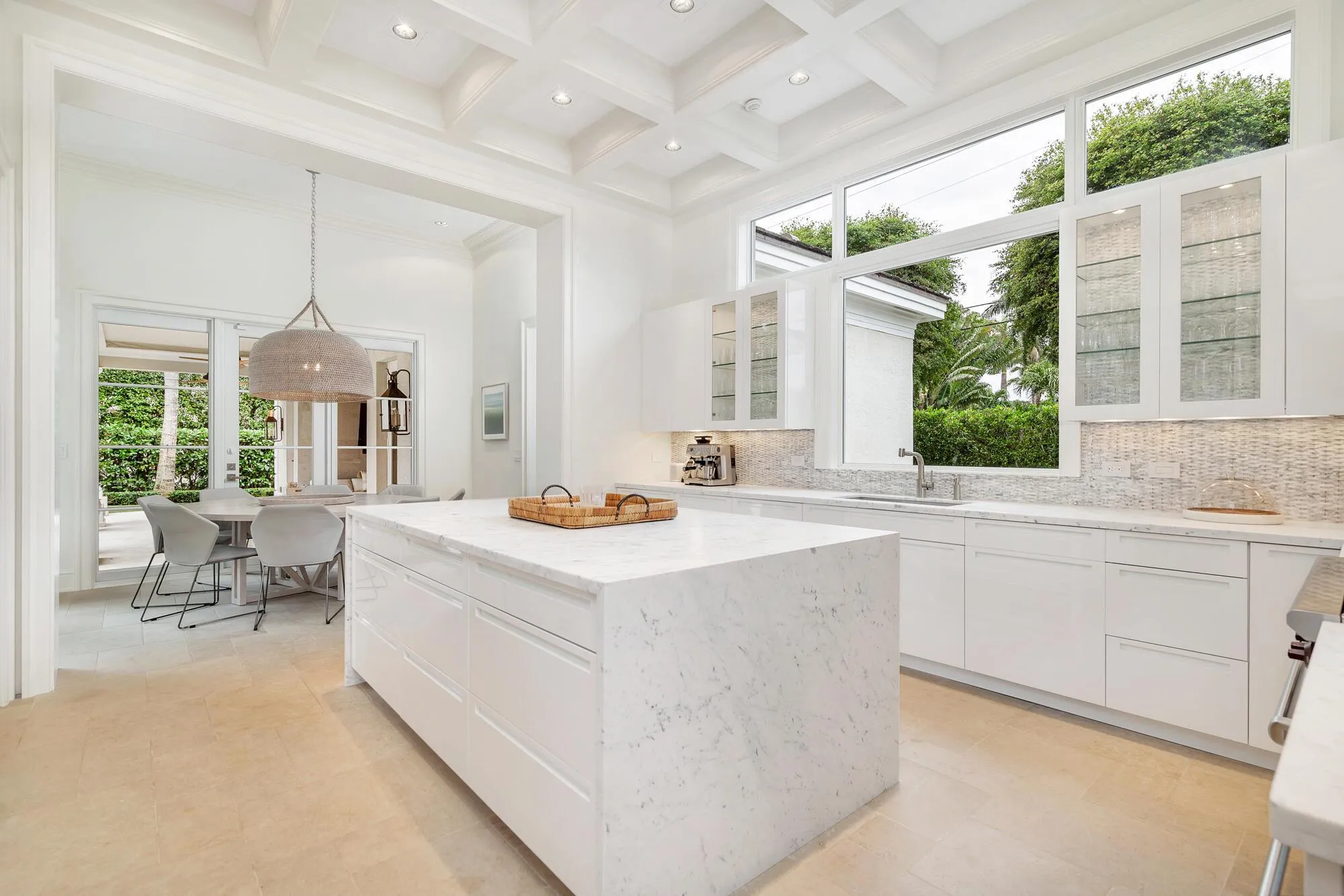 Located near the highly desirable North End of Palm Beach, this stunning property sits on a generous half-acre lot and offers double height volume with soaring 14' ceilings. The split floor plan includes a luxurious primary suite with a private lanai, complemented by wood flooring and transom windows that fill the home with natural light. The oversized backyard features bright sunny southern exposure and provides ample space for outdoor living and entertaining. Additional highlights include a covered loggia and a pool cabana bath. The spacious 3-car garage, with a discreet side entrance, adds practicality to this beautiful home. This is truly a must-see property to fully appreciate its charm. |