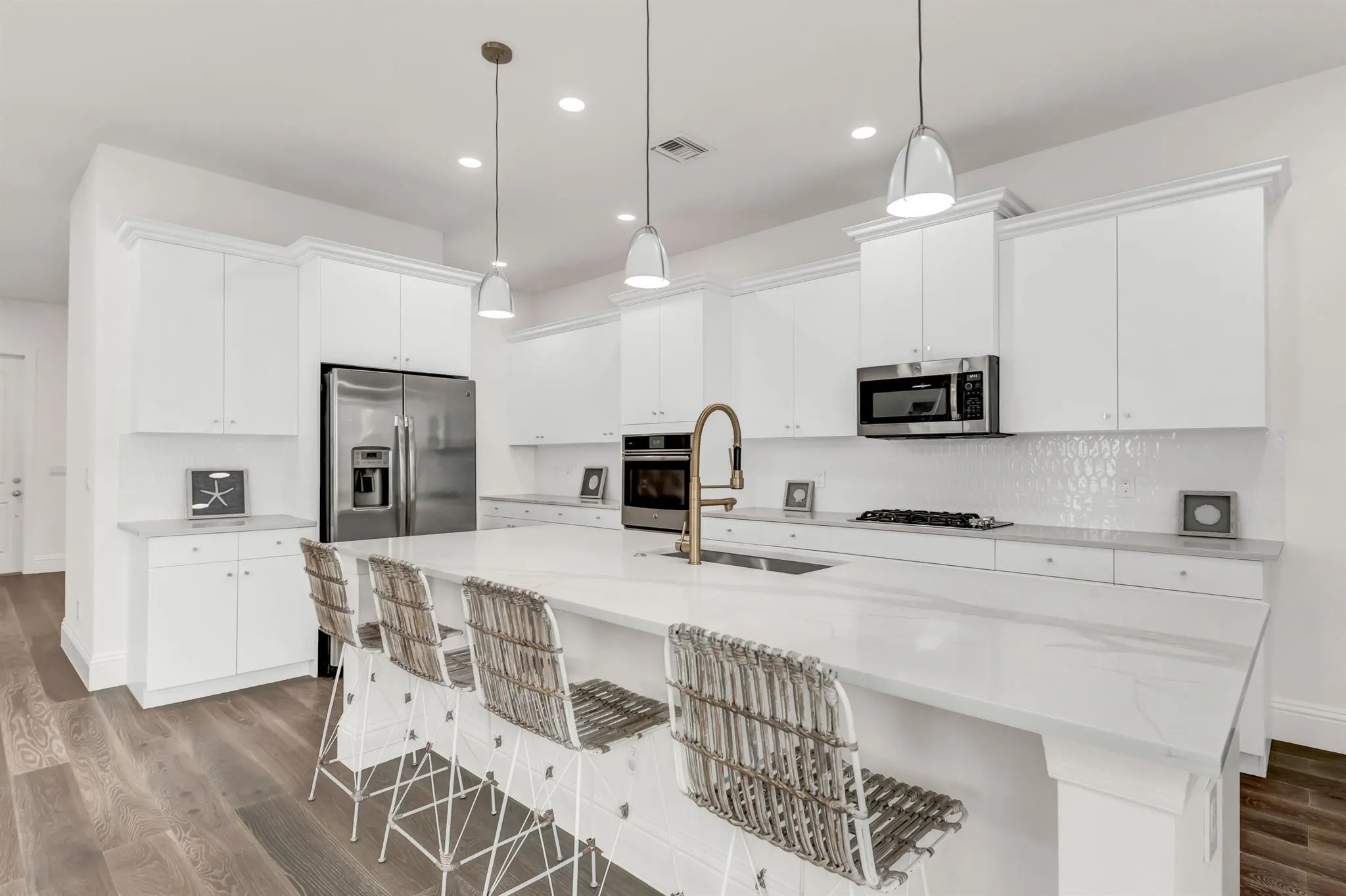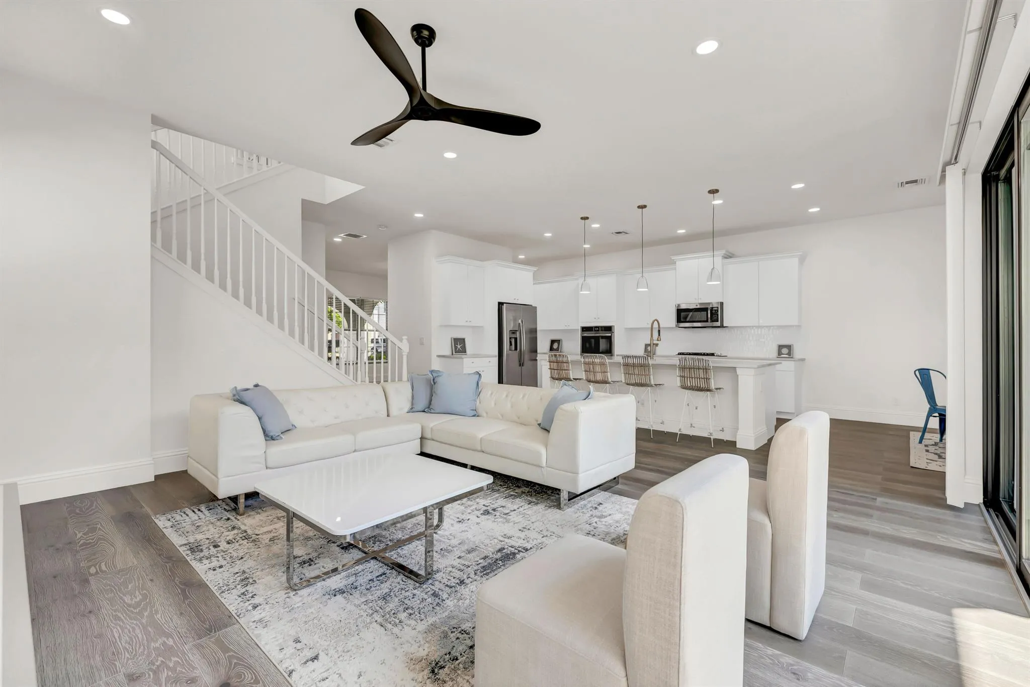 This beautifully renovated, modern 4-bedroom, 3-bathroom home with a 3-car garage is located in the prestigious Alton community of Palm Beach Gardens. This solid CBS construction boasts a bright and airy open floor plan, brand new luxury vinyl flooring throughout the entire home, and hurricane impact doors and windows throughout. The spacious kitchen is a chef's dream, featuring a brand-new quartz island, an undermount stainless steel sink, elegant white cabinetry, and stainless-steel appliances. The thoughtfully designed layout includes one bedroom and a den on the first floor, great for guests, a home office, and more. Upstairs, you'll find three additional bedrooms, including the luxurious primary suite with a large walk-in closet and a completely updated en-suite bathroom, SEE MORE. |