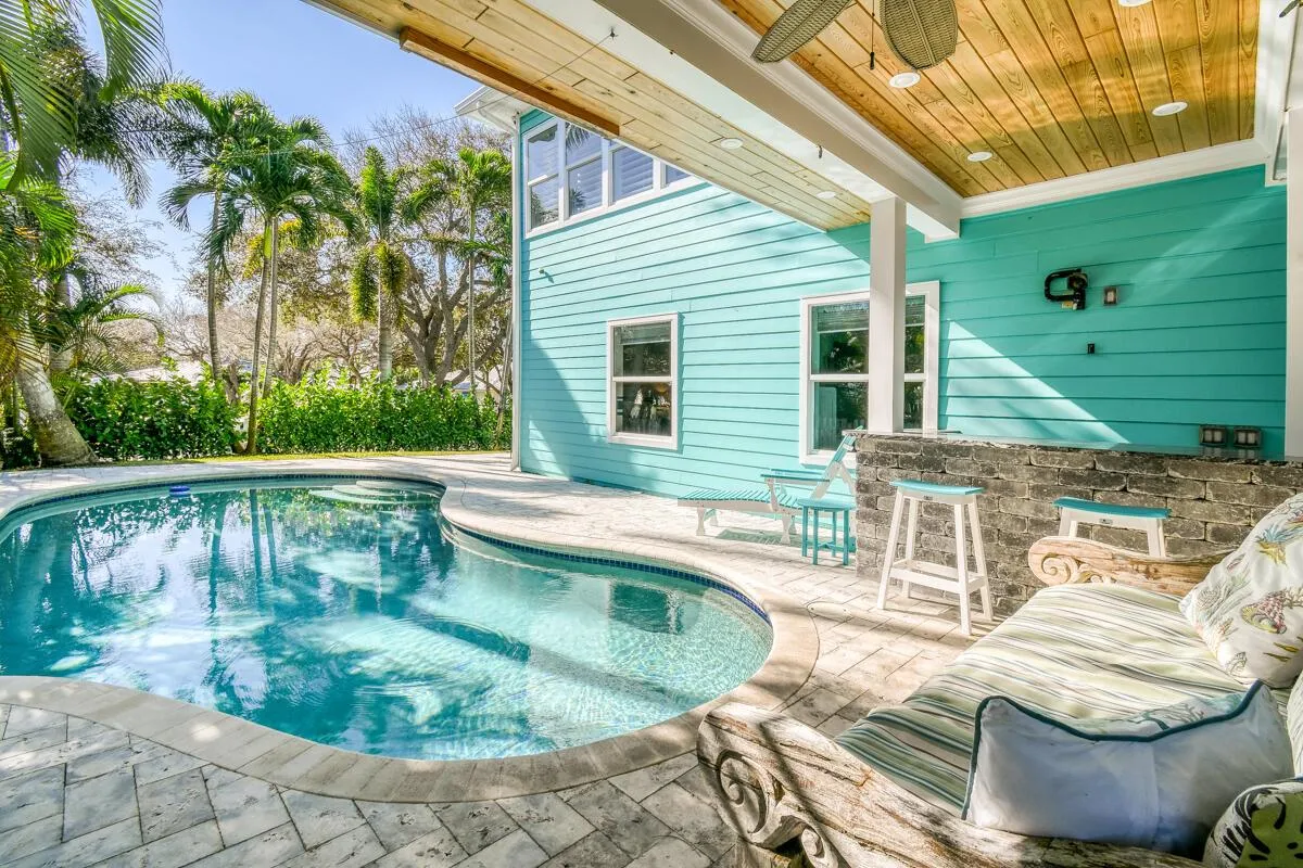 Beautiful 4/4 bth pool home in the highly sought after Key West Village of Tequesta. The main floor offers a bright and light spacious open kitchen with large island, stainless steel appliances, wood cabinetry with under cabinet lighting and granite countertops. Also on the main level is an outdoor porch overlooking the pool and a 2nd master suite. The 3rd floor is a private master ste with spectacular intracoastal and ocean views. Large walk in closet, separate laundry room, wet bar, and an outdoor porch to take advantage of the breezes off the ocean.1st floor has 2 en suite bedrooms with walk in closets, separate laundry room & cabana bath leading to pool, and tropical outdoor living space. Impact windows, plantation shutters. Private paddleboard storage and launch on the intracoastal |