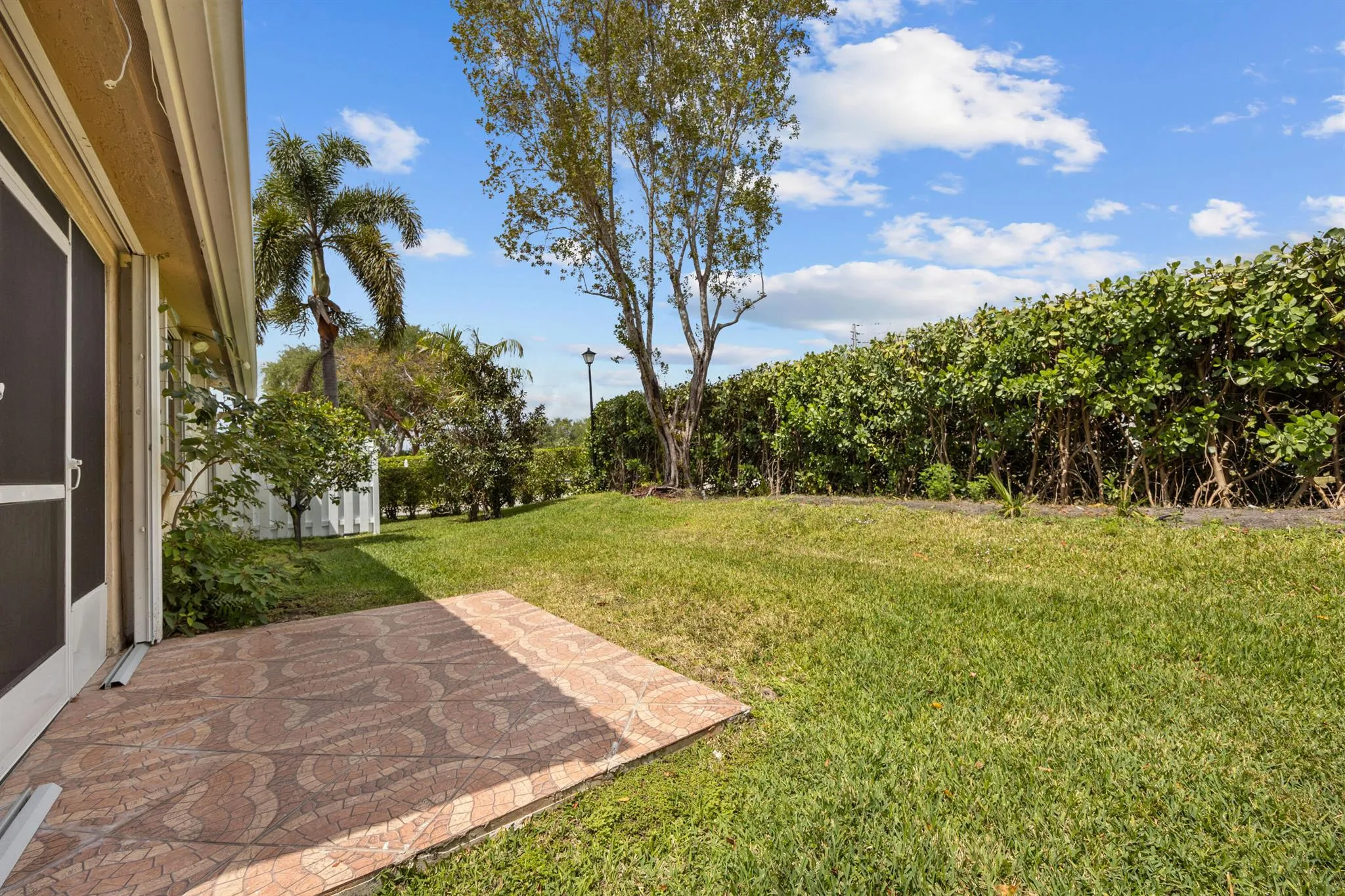 Cute as button! This adorable home in Hampton Lakes offers a light & bright feel with neutral tone paint/flooring throughout. Offering 2 bedroom split floorplan, den, screened patio, vaulted ceilings & super open floorplan. Primary bedroom w/vaulted ceiling is overlooking the backyard w/no rear neighbors. Primary bath also w/vaulted ceiling, dual sinks & step down oversized shower. Huge walk-in-closet. Guest bedroom & bath are in front & accessed through archway providing guests w/a private respite. Den & living room offer sliders to the screened patio plus open patio beyond. Eat-in kitchen w/ Frigidaire appliances & water filtration system. Corner lot w sidewalk on your side of the road a nice walk to nearby clubhouse/pool. Accordion shutters, HVAC 2019, HWH 2018. |