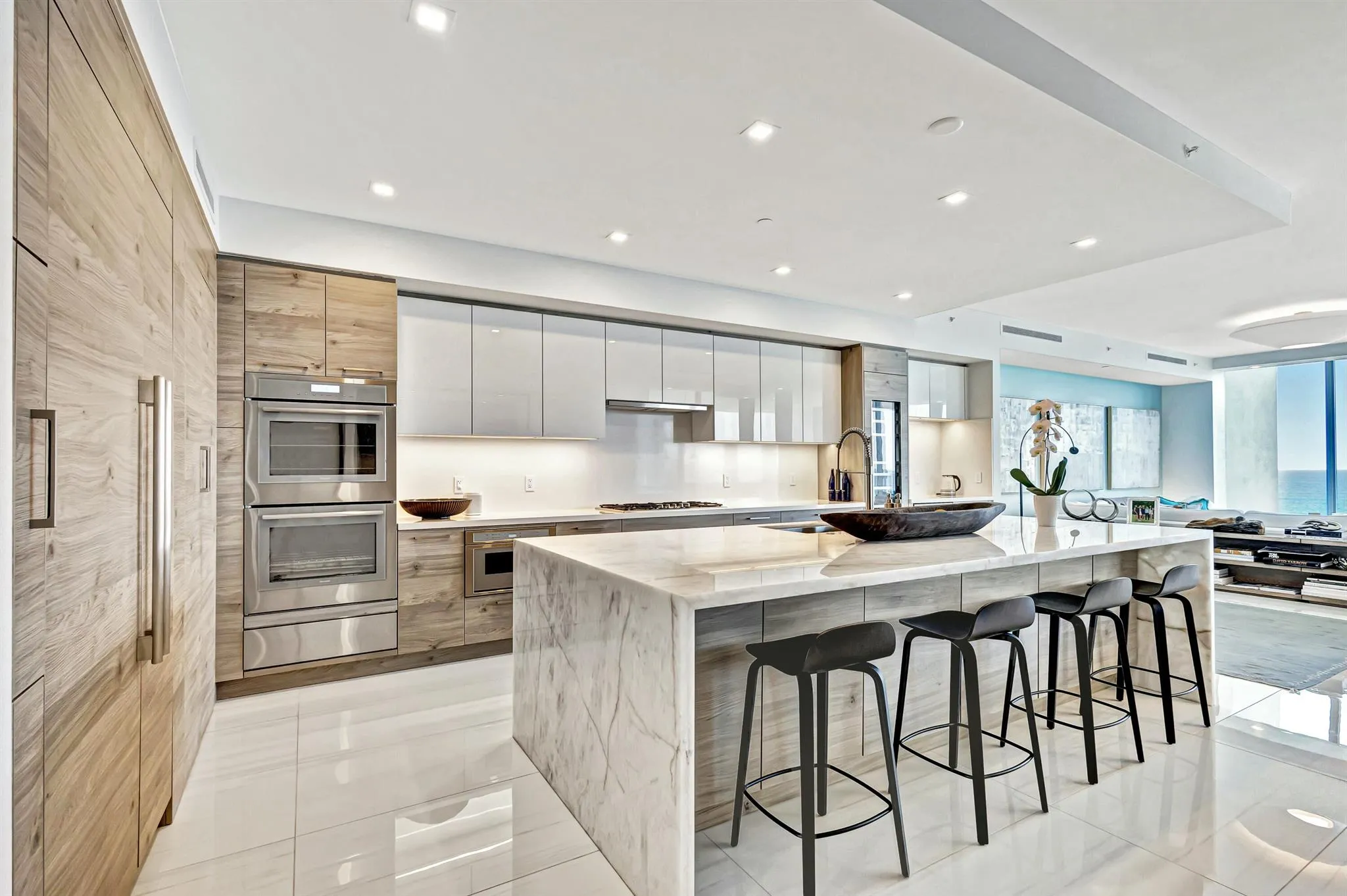 Your Private Beachfront Retreat Awaits! Experience unparalleled luxury in this stunning 3-bedroom + family room, 4.5-bath residence, boasting 3,753 sq. ft. of interior space in the exclusive 5000 North Ocean. As one of just 48 residences in this boutique building, this home offers the perfect blend of sophistication and serenity. Step off your private elevator into a modern, thoughtfully designed space with breathtaking ocean-to-Intracoastal views. The expansive southeast-facing terrace captures direct ocean views and overlooks 340 feet of pristine Singer Island beachfront, while west-facing terraces provide stunning Intracoastal panoramas and vibrant sunsets. Beautifully decorated and offered furnished, this residence is a showcase of modern coastal elegance. The gourmet kitchen features |