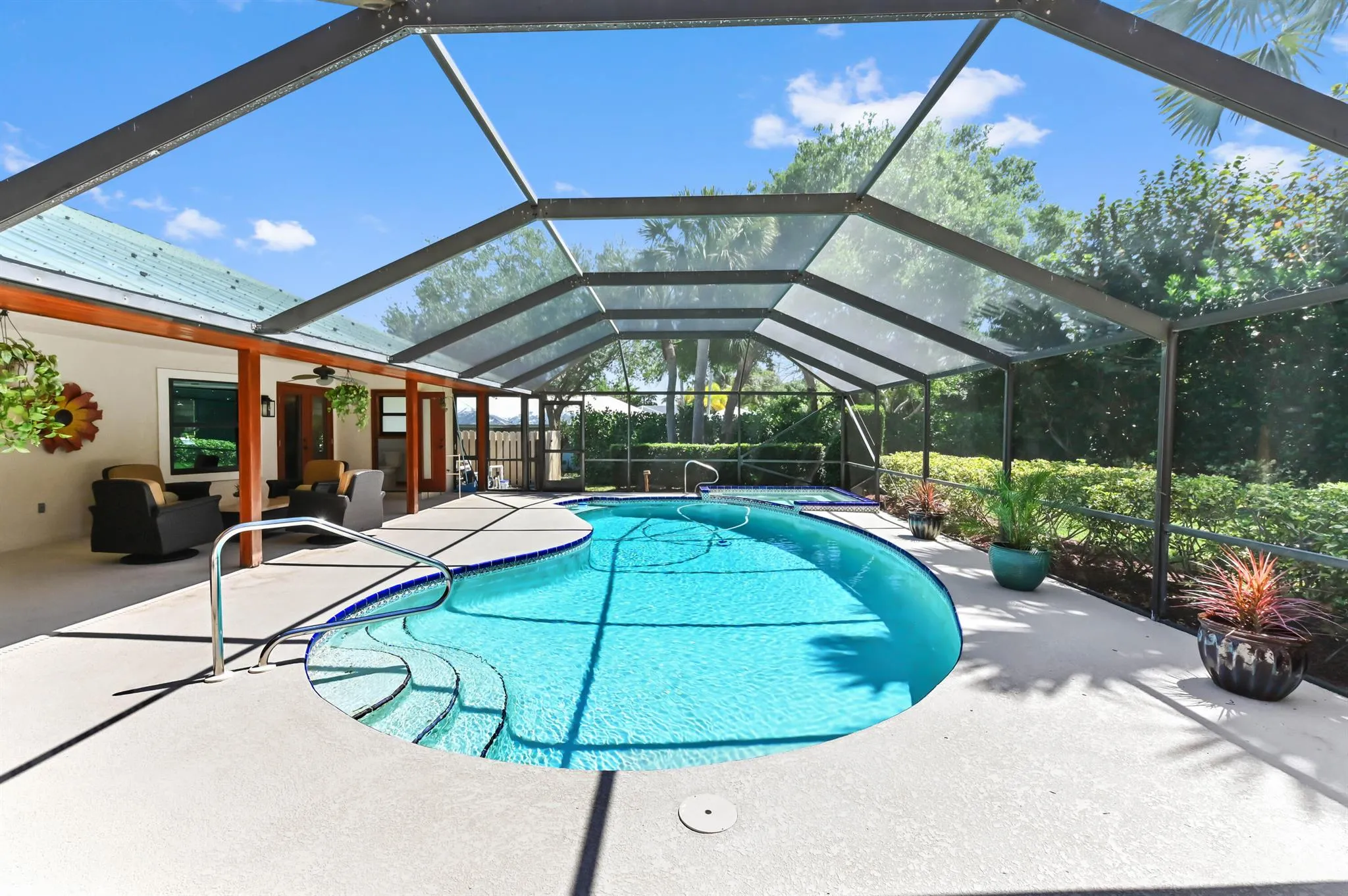''Seller to credit buyer $10,000 for mortgage rate buydown!'' Discover the perfect blend of comfort and character in this stunning 4-bedroom plus den, 2.5-bathroom pool home on a huge lot, nestled in the sought-after non-HOA community of Treasure Cove in Hobe Sound. A welcoming French door entry leads into a bright and airy living room, featuring charming authentic Saltillo tile floors, cathedral ceilings, custom woodwork throughout and direct access to the outdoor oasis. |