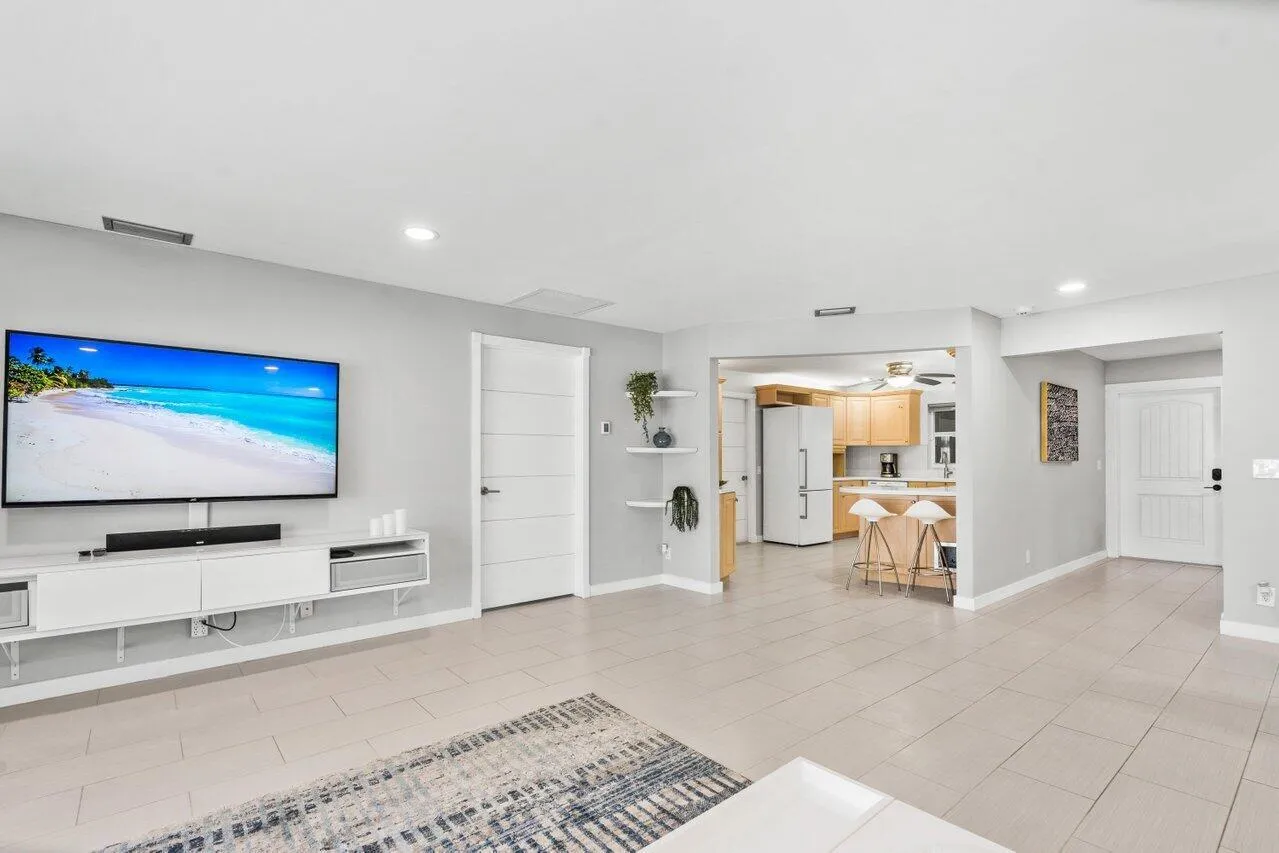 Available for annual, seasonal or off seasonal. Stylish & spacious vacation home rental minutes from Delray Beach & downtown. 4 bedroom 2 bathroom home recently renovated home includes a master suite w/king bed, & private bathroom, 1 bedroom w/ king bed, 1 bedroom w/2 queen beds w/sofa & 1 bedroom w/double bed.Open concept living features a large living, dining area & kitchen The pool can be heated for an additional $300 per stay. |