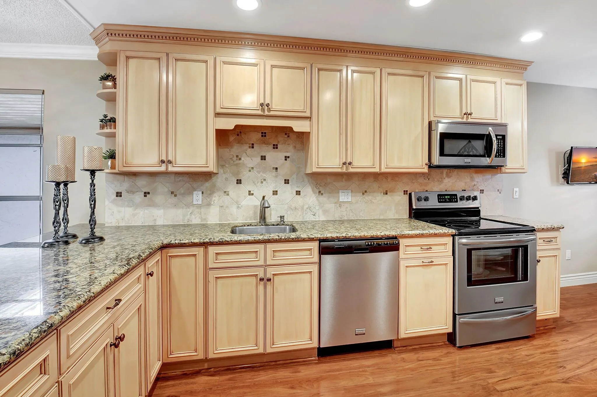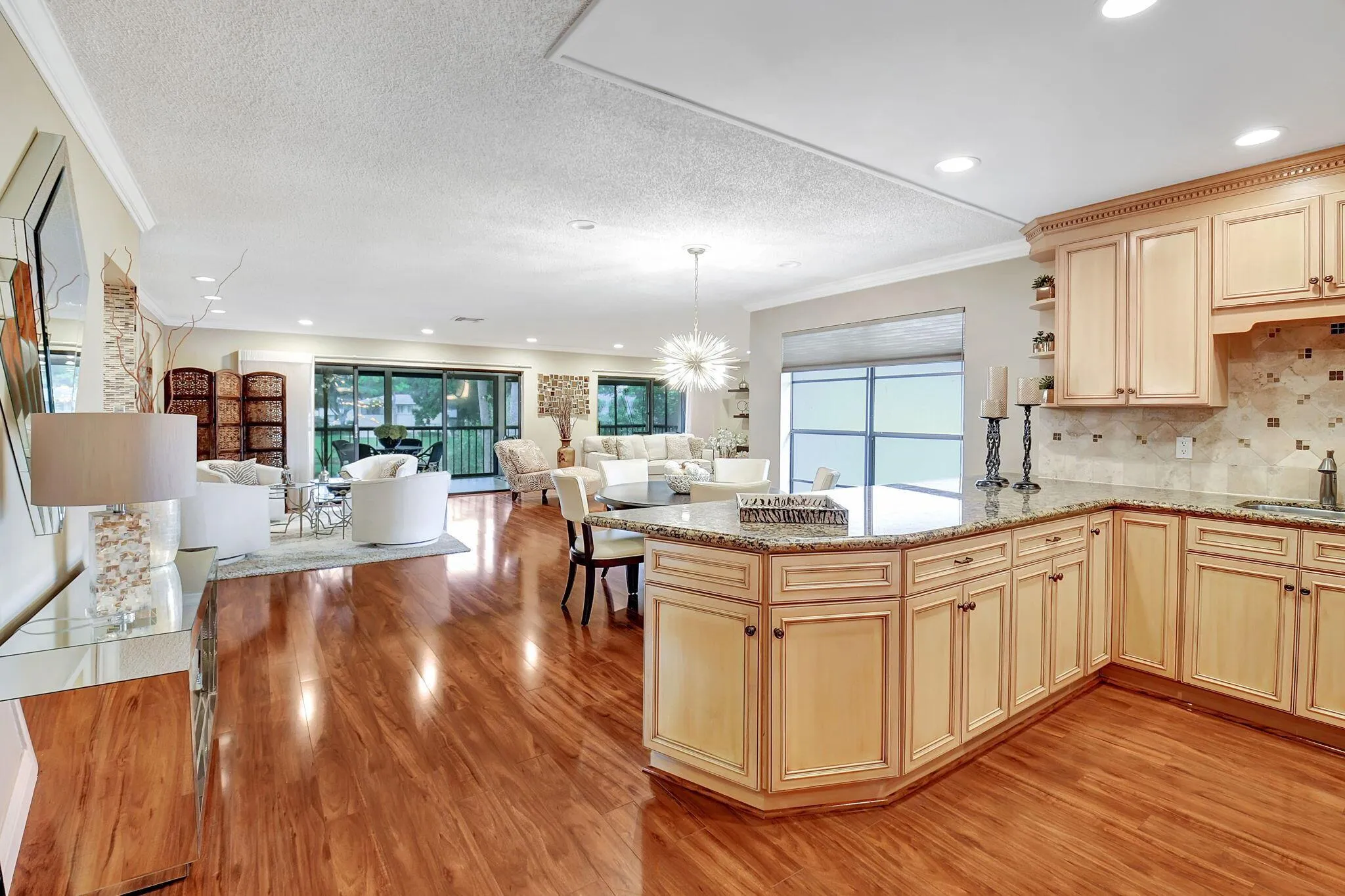 This absolutely beautiful 3-bedroom convertible, 2-bath condo offers a flexible layout that can be easily converted into a 3-bedroom space. The open concept design allows for a seamless flow between living areas, creating a spacious and inviting atmosphere. Large windows provide stunning water views, enhancing the peaceful ambiance of the home.The screened and enclosed lanai offers a perfect spot to enjoy the serene surroundings while being protected from the elements. The kitchen is a highlight, featuring stylish fixtures, and plenty of counter space for cooking and entertaining. The beautiful luxury vinyl plank (LVP) flooring throughout the condo adds a touch of elegance and durability, making this home as practical as it is beautiful. |
