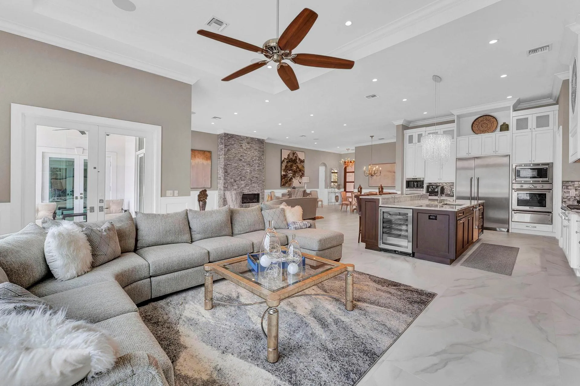 Experience luxury living in this rarely available custom turn-key waterfront home built by Boca Estate Builders. Located in East Boca Raton on a deepwater ocean access canal with no fixed bridges and 85 ft of prime dockage. This like new 3 bedroom, 4.5 bath home also includes a den that could be 4th bedroom. Elegant details include a chef's kitchen equipped with Thermador appliances, 12 ft high ceilings, wainscoting, crown moldings and more. Expansive kitchen island seamlessly connects with the open living and family rooms and dining area, all with amazing water views. Enjoy smart home technology, surround sound, impact glass, and generator. Outside includes heated pool and spa alongside a fully equipped summer kitchen providing the perfect retreat for relaxation or entertaining. |