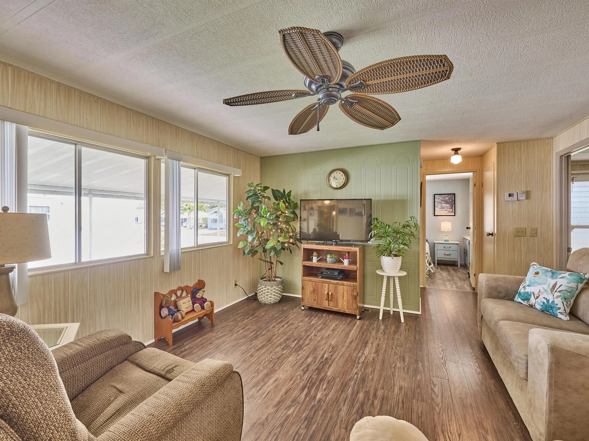 Immaculate Singlewide in Ridgeway, all ages, manuf home community in Hobe Sound. 2 Bedrn/2 Bath SPLIT PLAN. You enter the home into the inviting sunroom w New Window & Laminate flooring. A doorway leads to another room used now for storage but could be an additional sleeping space. Another door leads to the main living room w multiple windows to bring in the FL sunshine. The large Kitchen is open to LR & has a breakfast bar. The Master Bedrm is off the kitchen & can easily fit a King bed & night stands. The Master bath has tub/shower combo & new chair height toilet. The 2nd Bedrm is at the other end of the home w built-ins & ensuite full bath. The large screen porch is off the kitchen w door to the laundry/storage room. Mins to beaches, extra lg lot. YOU OWN THE LAND - NEW A/C 2020 |