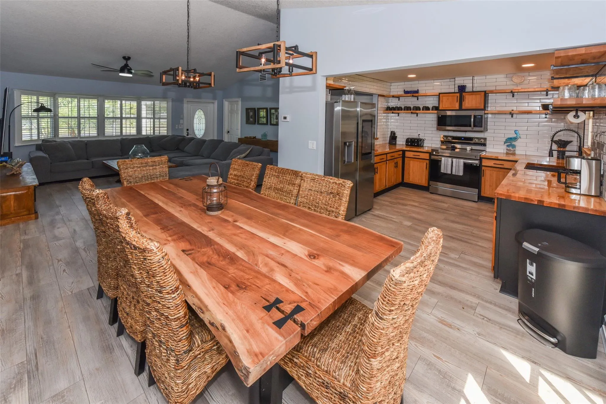 east-side neighborhood. No HOA and within walking distance of the beach. Freshly remodeled with new floors and bathrooms. The lot is huge, fully fenced and has plenty of room for a pool. There is a separate bonus room in garage area that can be easily converted back to the garage. Separate laundry plus storage area, covered patio and much more. |