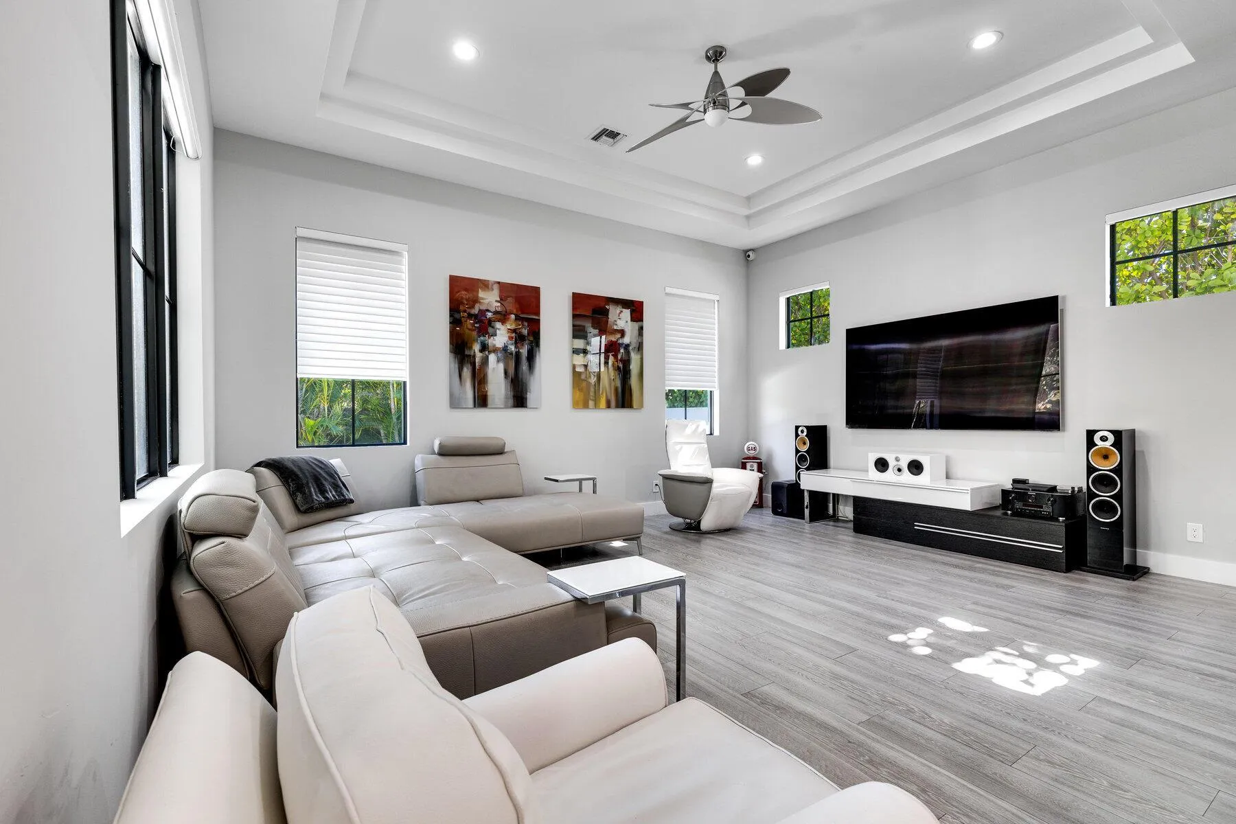 550 NE Mizner Boulevard is the closest home to Mizner Park and the Mizner Park Amphitheater, offering unmatched access to Boca's premier shopping, dining, and entertainment. Nestled in the coveted Boca Villas neighborhood within the prestigious Golden Triangle, this stunning 6-bedroom, 5-bathroom residence offers unparalleled luxury and convenience. Built in 2017, this light-filled home boasts an expansive layout, featuring both upstairs and downstairs primary suites--an exceptional rarity that ensures ultimate flexibility and comfort.The main floor showcases matte porcelain flooring, while engineered wood flooring lends warmth to the second floor. The open-concept design is highlighted by 10-foot glass sliding doors, seamlessly connecting the indoor and outdoor living spaces. The |