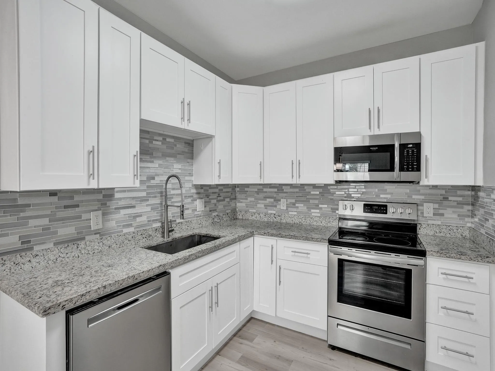 This totally remodeled 3 bed/2.5 bath corner townhome features updated kitchen with white shaker cabinets, newer stainless steel appliances, and granite countertop, 1 year old air conditioning unit, new laminate flooring throughout, totally updated bathrooms and screened patio. The home features a master bedroom and bathroom on the first floor and two bedrooms with one bath on the second floor. Nice kitchen with breakfast area, half a bath and ample living/dining on the first floor. Two car garage and ample driveway to park at least two additional cars. Cozy patio overlooking garden area. The Lands End community has an excellent pool and spa area. Property cannot be leased the first year of ownership. |